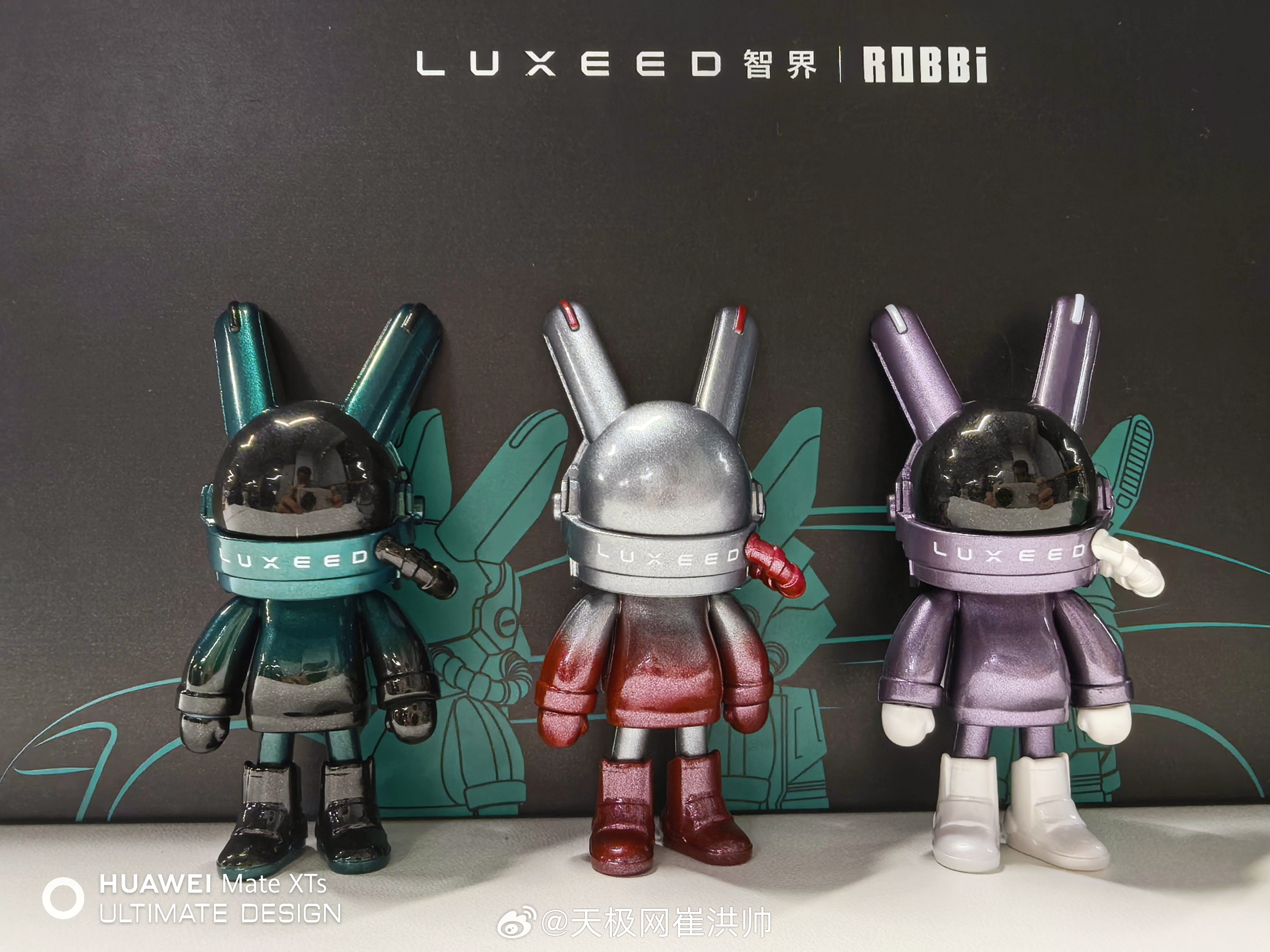 收到一套智界与潮玩IP ROBBi出的联名礼盒,3款智界专属车色定制手办,音响小