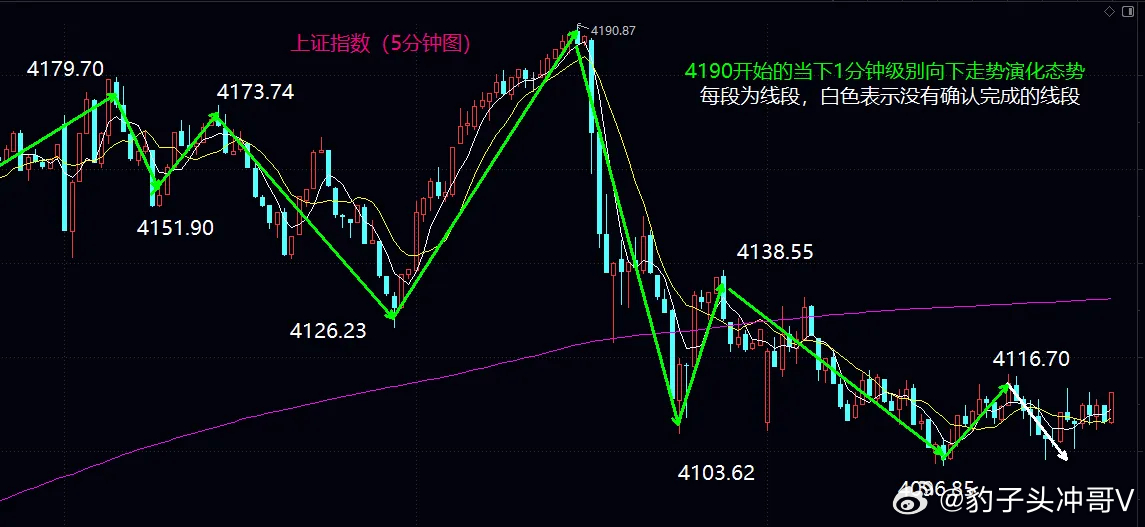 大盘开启以空间换时间震荡模式,月底前迎波段操作舒适窗口期今日A股大盘走势完全符合预期,走出高效震荡演化行情,不仅下破4100点关口,促使前后两个1分钟级别波动中枢重叠扩展,更在全天走出上下上下4根新线段,尾盘险些完成第5根线段的构筑,盘面节奏清晰且有序。这一走势,标志着大盘正式进入此前预判的横盘震荡整固4100点关口的阶段。不出意外的话,本月底之前,市场有望通过震荡完成3815点上涨以来的首个5分钟级别震荡中枢的构建,这将为春节前后指数的再次向上突破,筑牢坚实的技术基础。从中枢结构来看,随着今日的中枢扩展,自昨日高点开启的1分钟级别向下走势仍未确认走完,而该向下走势的首个反弹中枢也已构筑完毕,中枢区间锁定在4103-4116点。这意味着,只要短线大盘能在4100点关口站稳,指数随时有望切换为向上方向的1分钟级别走势,震荡中暗藏上攻动能。综上,大盘已大概率进入4100-4200点区间的5分钟级别中枢平稳震荡过程,在此背景下,个股将迎来轮动活跃的行情。对于偏好短线操作的投资者而言,这正是绝佳的波段实践窗口期,可把握板块轮动节奏,在震荡中捕捉结构性机会。