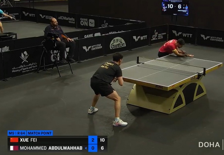 WTT多哈球星挑战赛:薛飞3-0战胜阿卜杜勒瓦哈卜,晋级男单32强