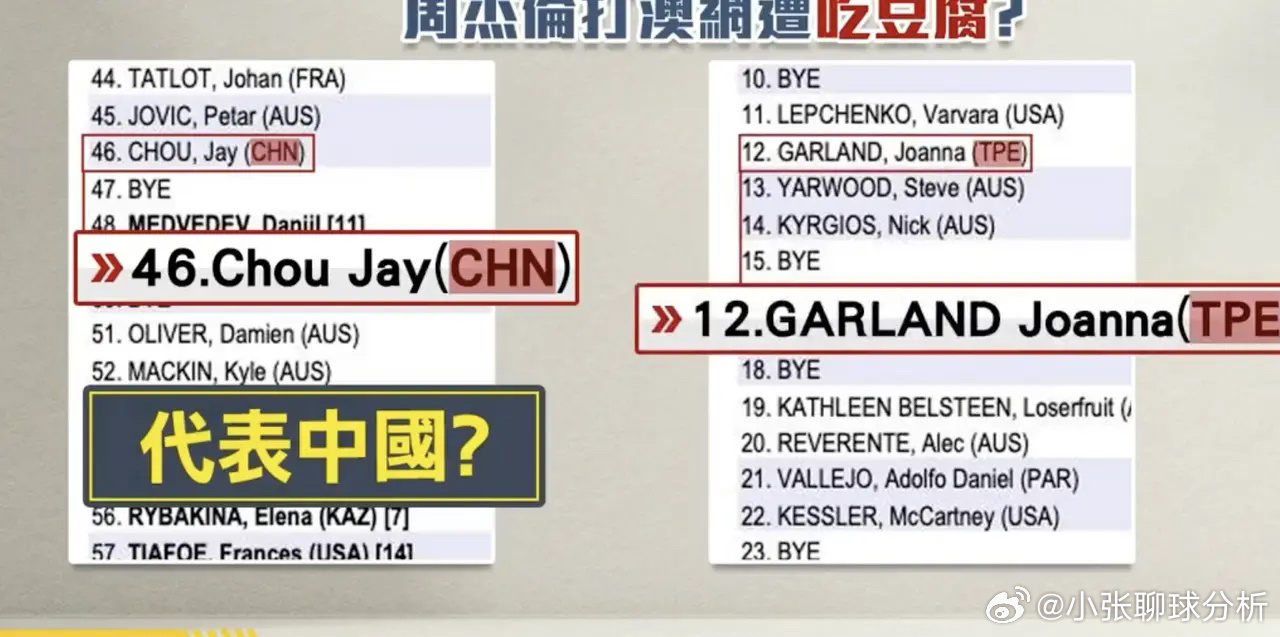 周杰伦参加澳网自报国籍为CHN 台湾媒体集体表达不满但无人敢骂他1月14日晚,周杰伦在澳洲参加澳网一球制胜的比赛。首轮比赛,周杰伦便被淘汰出局,他连球都没有碰到,引起外界关注。值得一提的是,周杰伦给澳网报的国籍是CHN(中国)。周杰伦是本届澳网一球制胜表演赛的特邀嘉宾。赛前,周杰伦戴着墨镜高调亮相。不过,他与对手猜拳时输了,对手获得了发球权。结果,对手直接发了个ace球。周杰伦几乎没有反应,比赛就结束了。赛后,周杰伦自嘲自己后面要好好练习猜拳。在澳网官网的签表上、外网直播的画面上,澳网官方给周杰伦标的国籍都是CHN,这引起了外界大面积的关注。作为对比,同样参加一球制胜的中国台北职业选手乔安娜-加兰则标注国籍“TPE”(中华台北)。据悉,周杰伦不是职业球员,他未注册职业网球协会,而非运动员的国籍信息则是由参赛者自己提供证明,标注内容需要经过官方的审核。所以,CHN的国籍是周杰伦团队自己报上去的,而非澳网官方自行加戏。对于周杰伦自报国籍CHN的行为,台湾媒体普遍很不满。在报道这件事的时候,台湾媒体均表示这个现象太反常。但是,没有一家台湾媒体以及台湾民众公开批评或者辱骂周杰伦。台湾的网红陈沂感慨周杰伦的地位:“周杰伦参加澳网比赛,国籍直接写‘中国’,结果没有青鸟敢出征他!当你强到变成周杰伦的时候,就是超越一切的存在。”