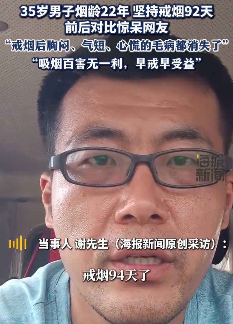 22年烟龄!35岁男子戒烟92天容貌体质双焕新,网友:像换了个人 “以前胸闷