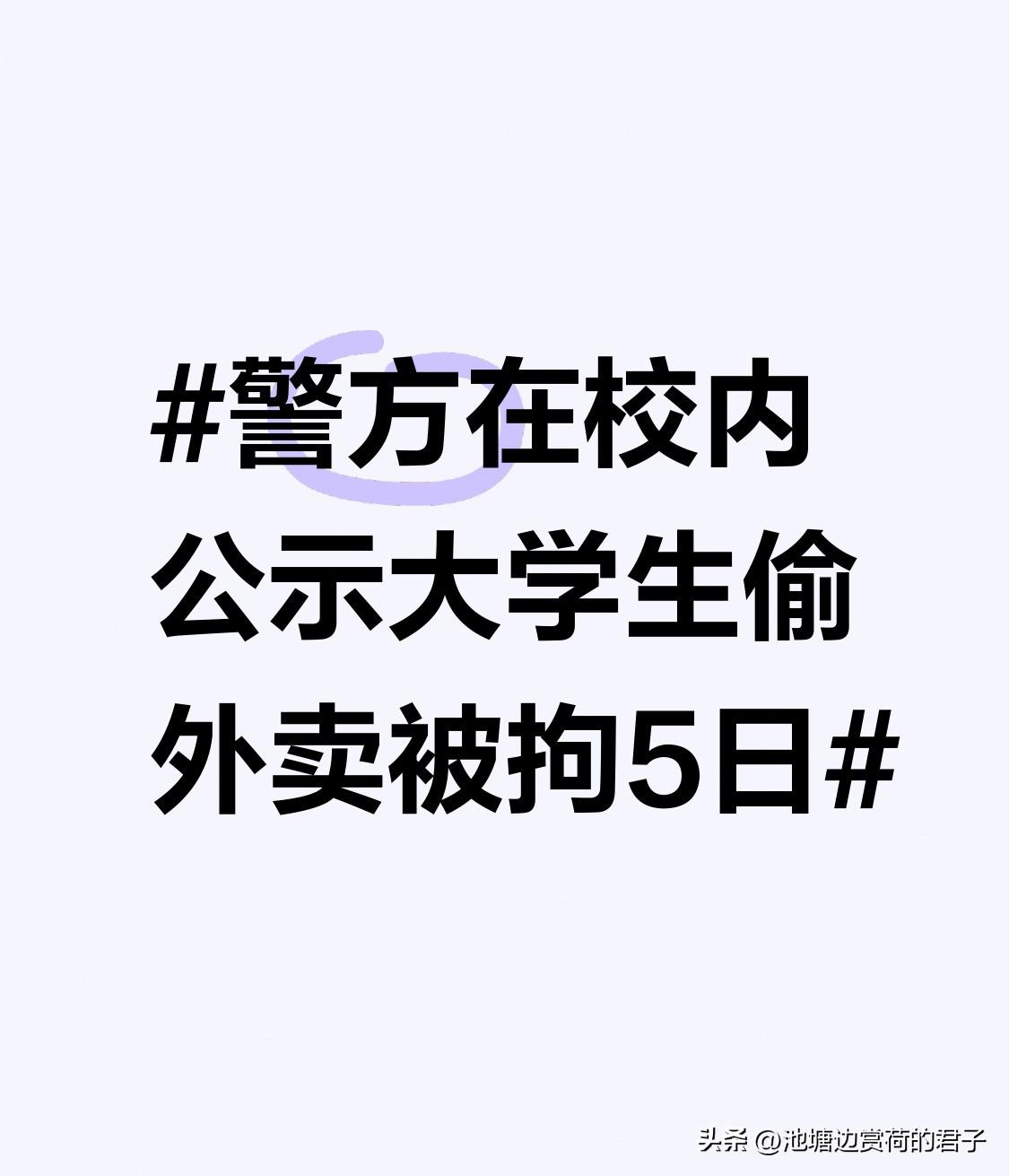 警方在校内公示大学生偷外卖被拘5日 现在大学生偷外卖的事儿还挺多。广西贺州学院,警方在校内外卖架旁公示,一学生偷外卖被拘5日。2025年12月28日有学生报警外卖被盗,警方侦查后,29日就抓获嫌疑人张某某,按规定对其行政拘留5日,还给出了法律提示。 此前山东鲁东大学也在校内贴通告,驻地公安机关查获5起学生偷拿外卖案,个别学生构成刑事案件。律师提醒,即便外卖单价低,多次盗窃也可能构成盗窃罪。警方和学校的做法很有必要,这既是警示教育,也给学生们敲响警钟,莫因贪小便宜违法犯罪!