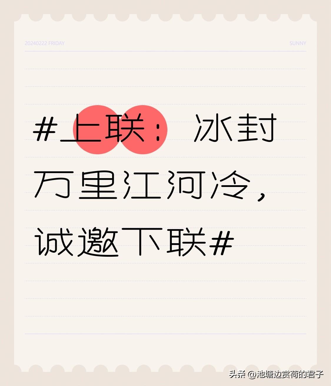 看到“冰封万里江河冷”这个上联,瞬间有了画面感。冰天雪地,万里江河都被寒冷笼罩,这是冬日的极致之景。 我来对个“雾锁千山草木寒”。“雾锁”对应“冰封”,都是一种自然景象对环境的笼罩;“千山”对“万里”,都是宏大的空间概念;“草木寒”对“江河冷”,草木和江河都是自然事物,“寒”和“冷”也相互呼应。 就像大雪节气,屋外冰封万里、雾锁千山,而屋内炉火正旺,大家围坐一起吃着腌制的肉,补着身体,别有一番风味。