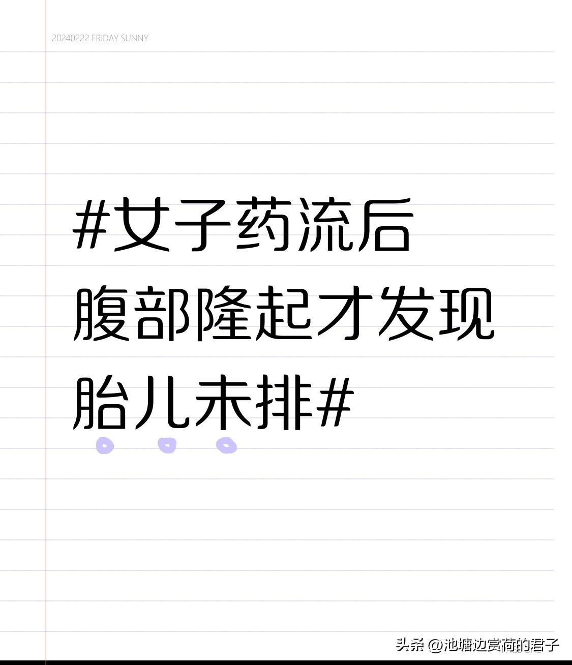 女子药流后腹部隆起才发现胎儿未排 这哈尔滨20岁女子药流后不复查,腹部隆起才发现33周腹腔妊娠,真的太吓人了!她药流后自我感觉流干净,把医生的复查叮嘱抛到脑后。先是小腹隐痛以为正常,腹部变大还以为长胖,直到家人发现异常才送医。 腹腔妊娠可是异位妊娠里最危险的,胎儿没子宫保护,随时可能大出血危及生命。她能撑到33周算万幸。其实药流未排出孕囊的情况不少,可能和子宫收缩、孕囊位置等有关,得通过超声复查等方式干预。很多年轻女性对流产护理知识欠缺,觉得没症状就没事,这疏忽真可能致命,药流后复查一定不能省啊!