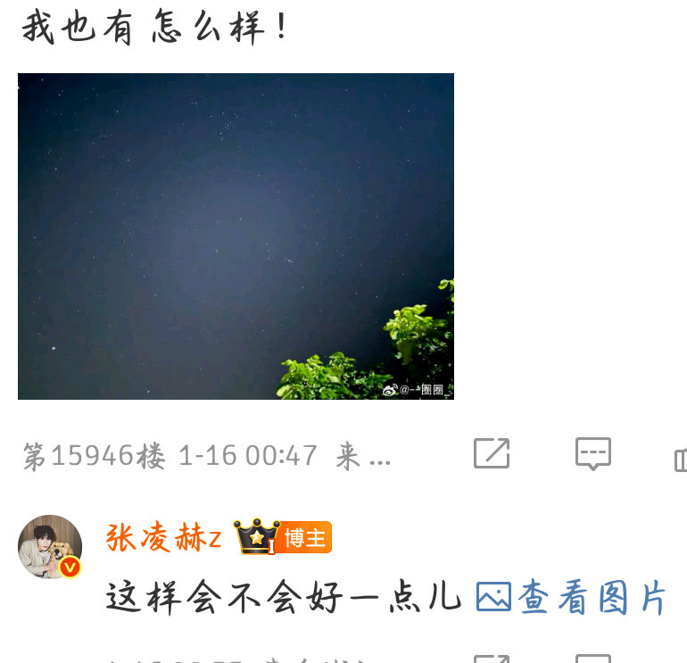 张凌赫张凌赫深夜翻牌张凌赫半夜翻牌粉丝谁能不爱张凌赫的宠粉时刻!下班和粉丝分享星空、唠唠家常,好温馨的时刻啊