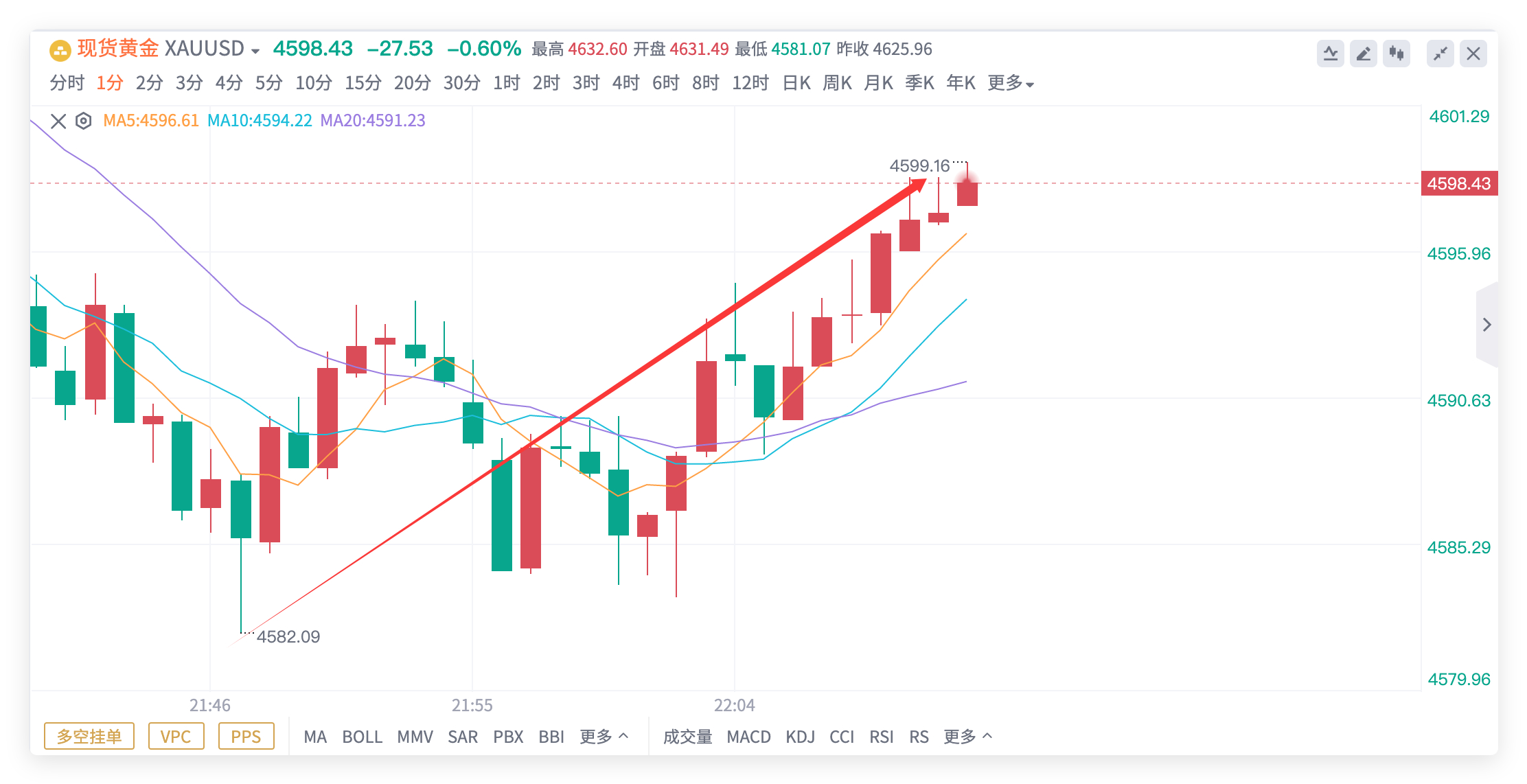 黄金4585多单,抵达4598出局,获130点!黄金终归不负我,也算给我留下了一