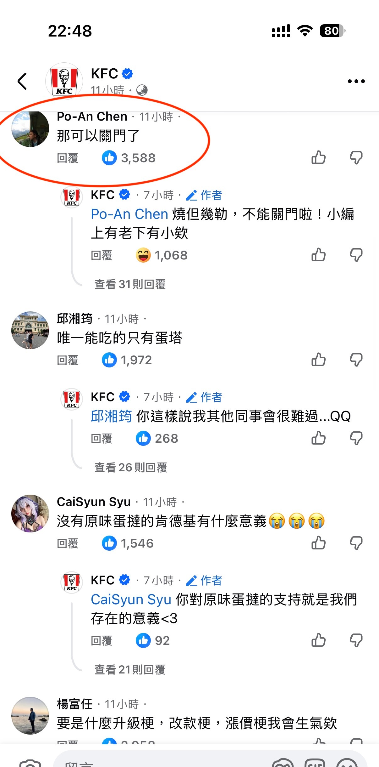 OMG!台湾肯德基宣布停售原味蛋挞!!!民众一片哀嚎!赞数最多留言直接说:那可以关门了🆘
