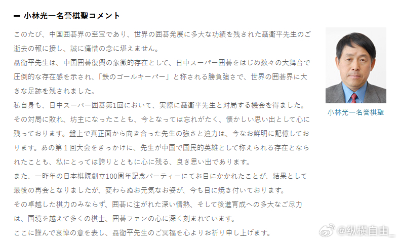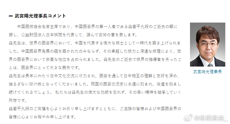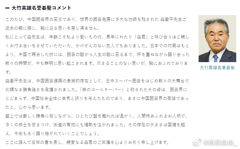 日本棋院中国囲碁界の重鎮・聶衛平九段が逝去