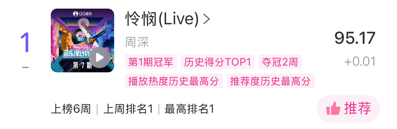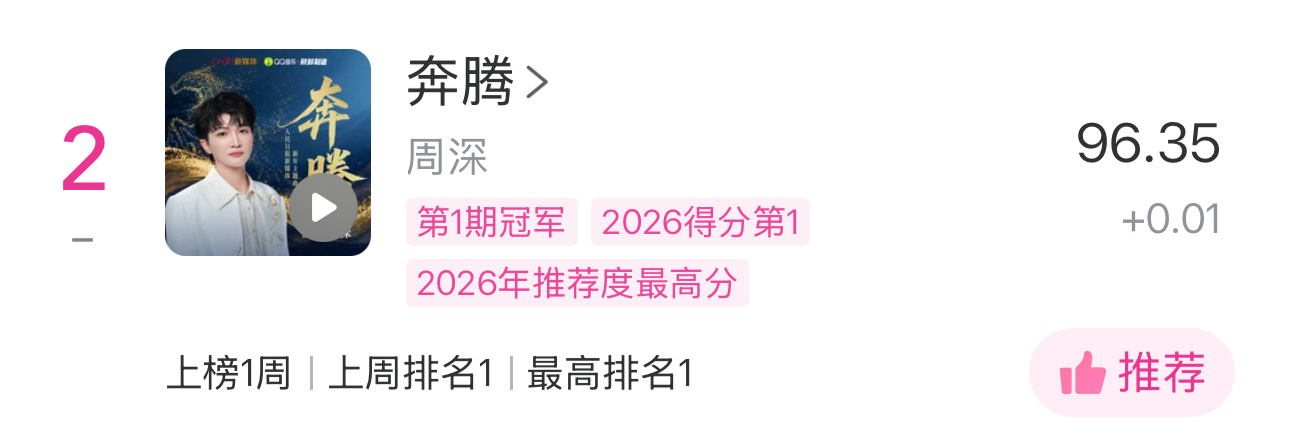 周深 📣1.15 Uni提醒 📣米米们晚上好睡前看看TX音乐棒里的uni棒和live棒不要忘了1️⃣live棒给《怜悯(live)》,基础2🎫2️⃣uni给《奔腾》,完成小作业6🎫送出做完日常挂歌单哦3个平台都送出推➹