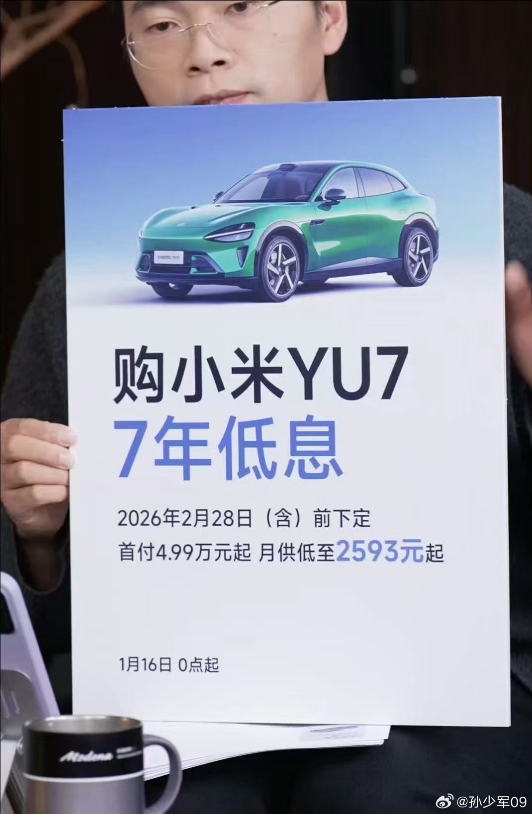 今天雷总直播官宣了小米YU7也推出7年低息,并且限时全系赠送双零重力座椅