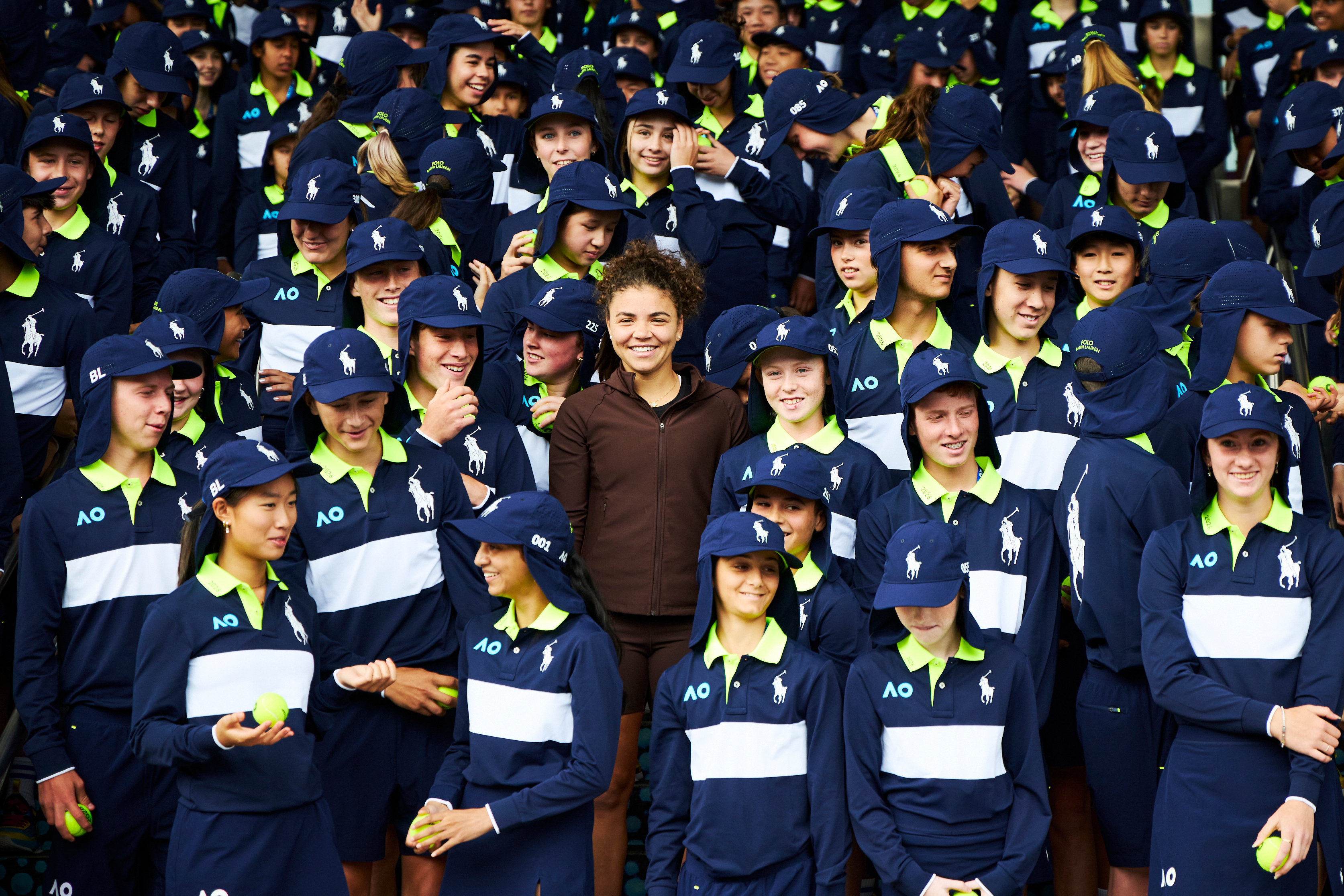 澳网2026渐近,保里尼和球童合影!摄影:前方记者 李建艺拍于墨尔本公园罗德拉沃尔球场入口楼梯