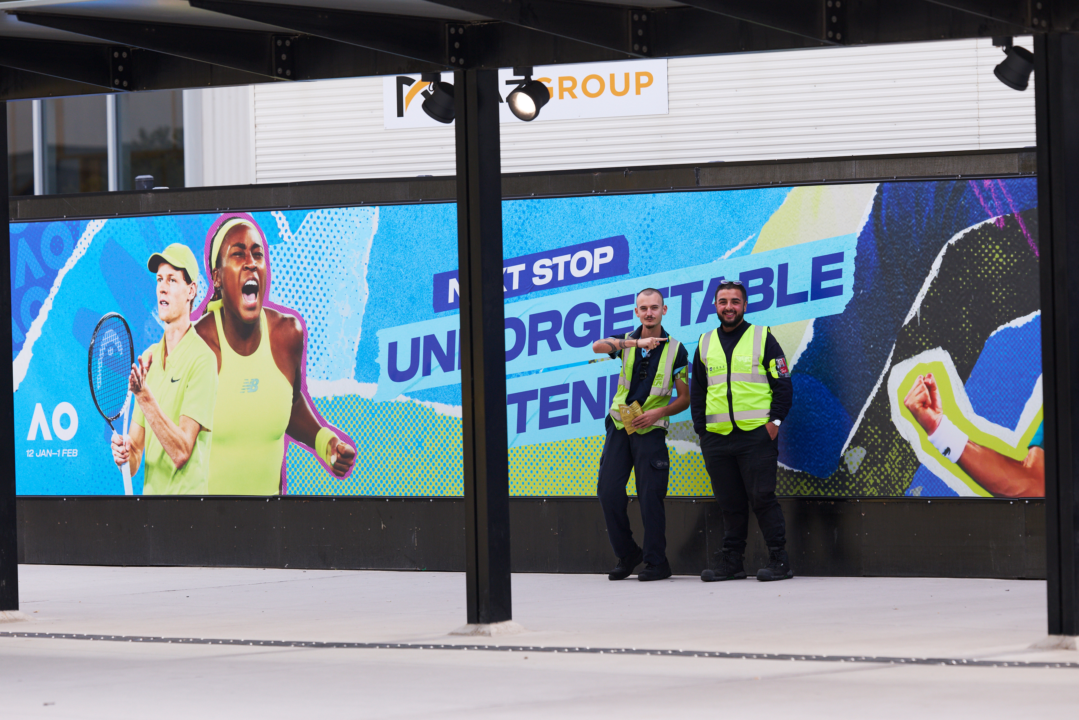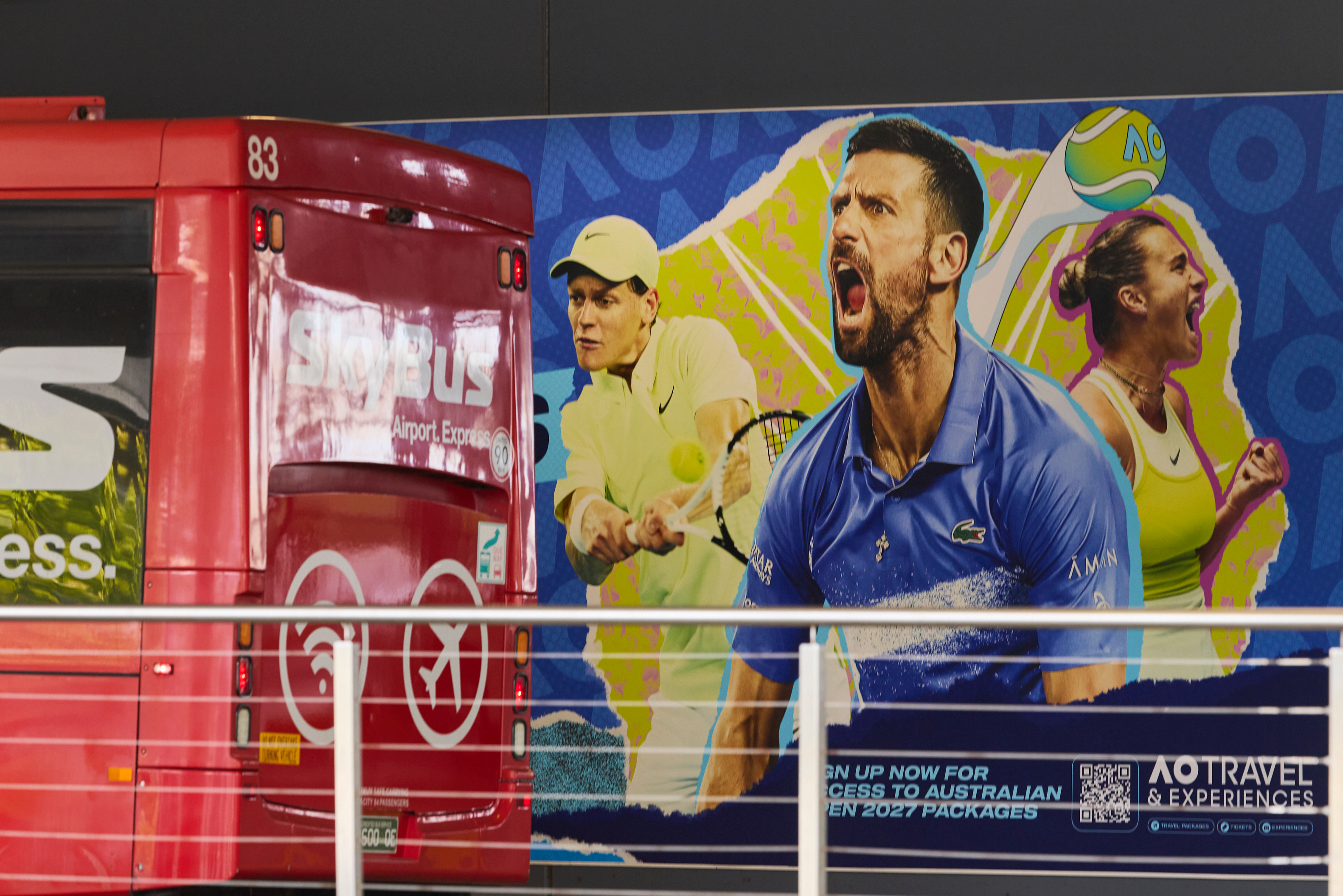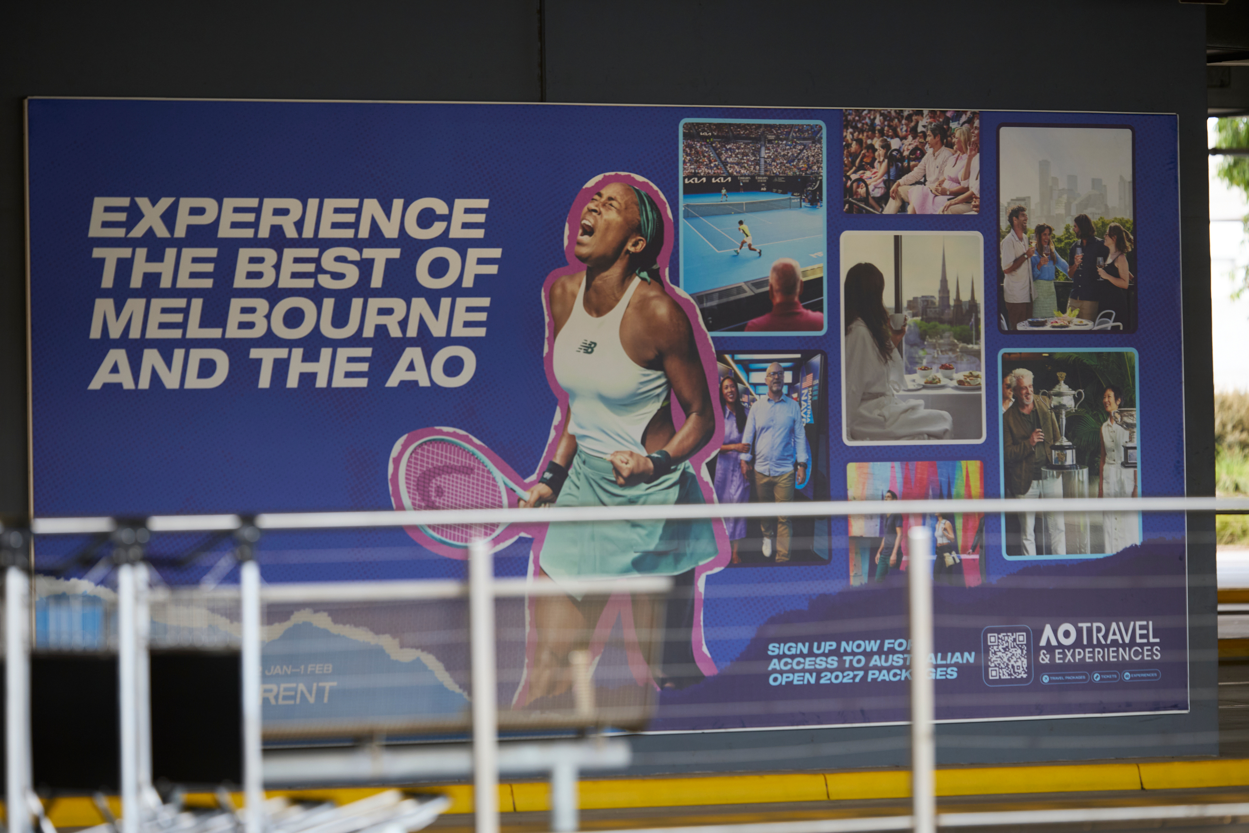 墨尔本机场的郑钦文澳网海报和各路球星!经过海报的那一刻,我也是有一丝淡淡的忧伤和小遗憾。摄影:前方记者 李建艺澳网