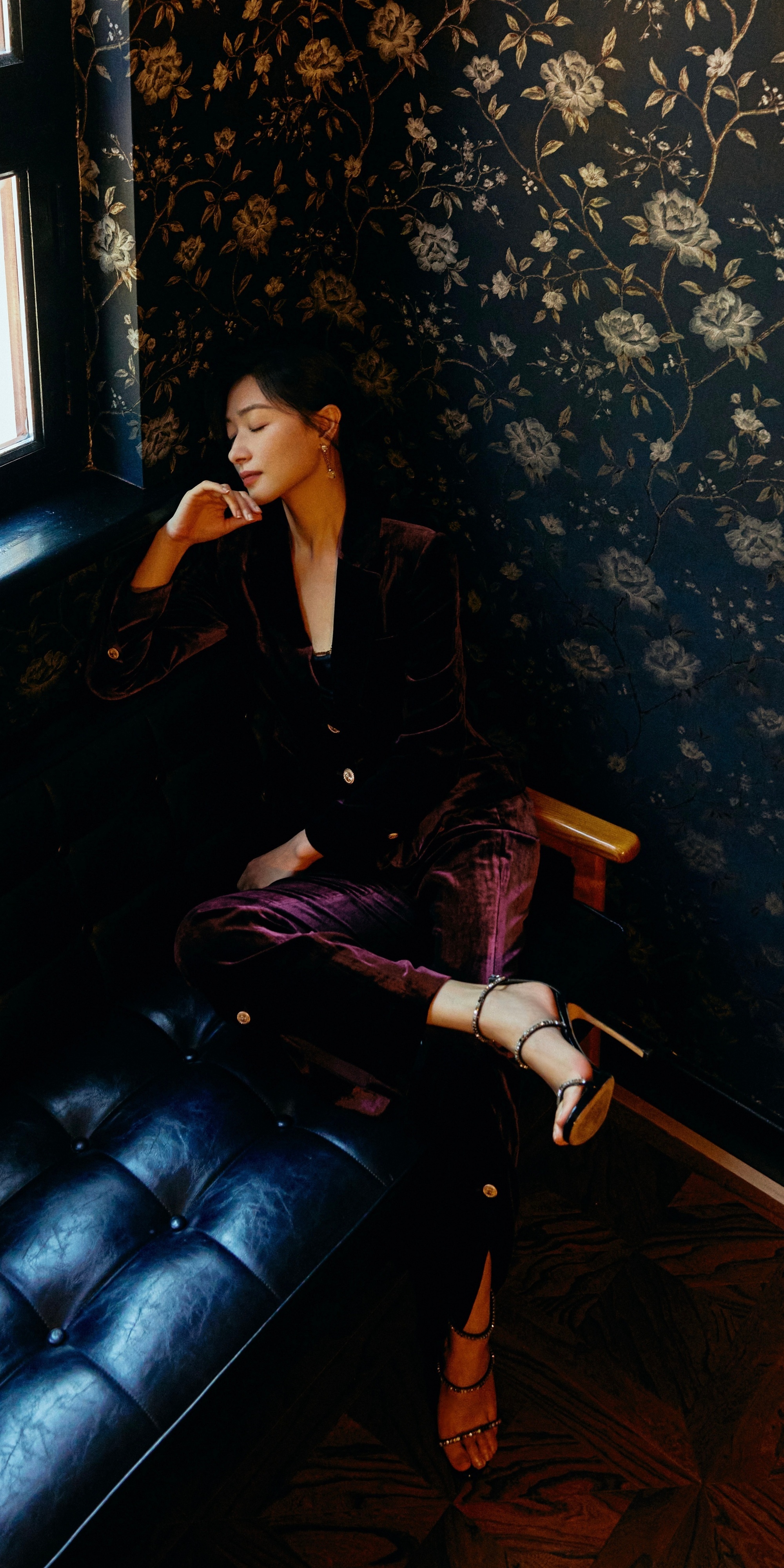 秦岚鎏金细闪的吊带裙裹着温柔气场,利落短发衬得肩颈线条愈发精致。2025.8.