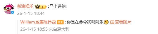 陈伟霆什么时候进组传下去陈伟霆马上进组新浪娱乐在线催更,满屏都是催进组的呼声。阿乐喊话“马上进组”,挑眉反问“你是在命令我吗”,这波互动太有意思,传下去!陈伟霆这就安排进组!