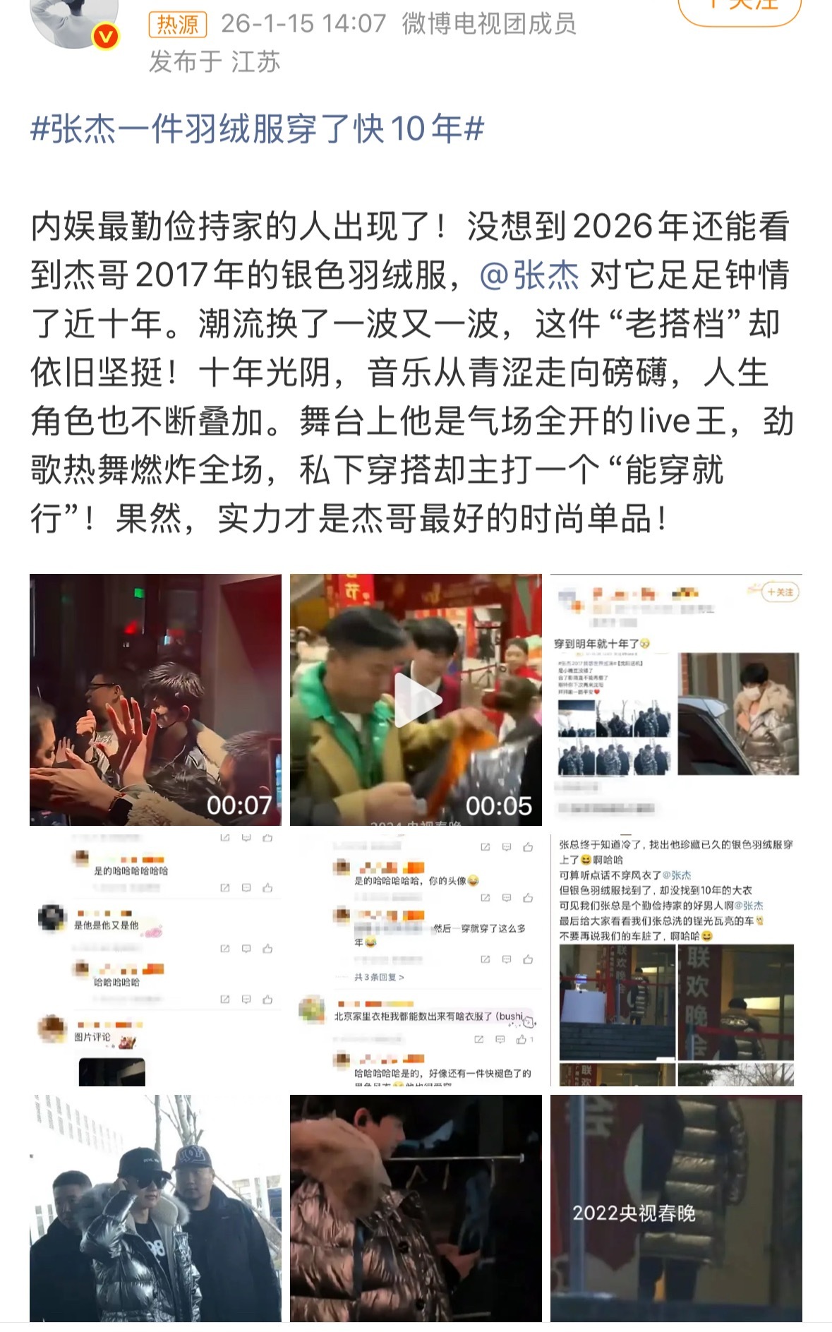 张杰回应一件羽绒服穿10年张杰发文展示了自己成都新春演唱会的进展,并回应了一件羽