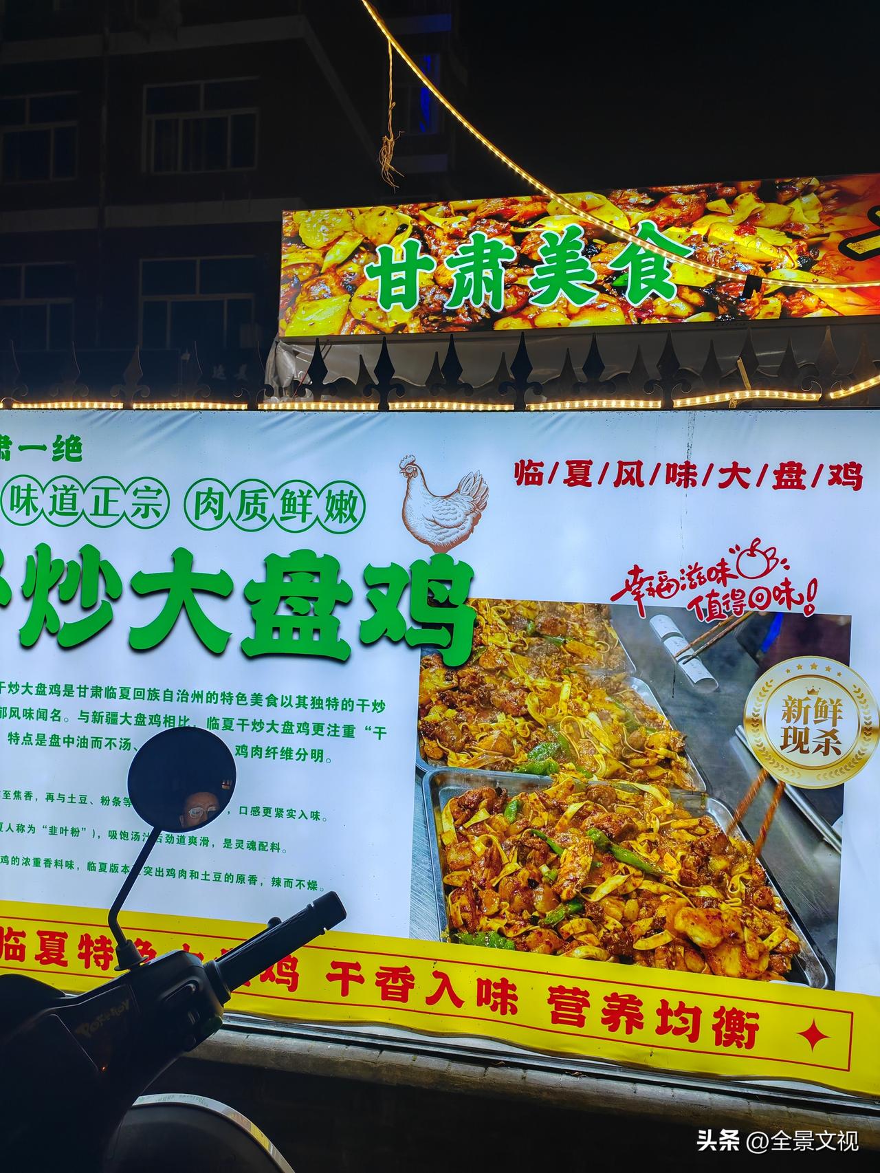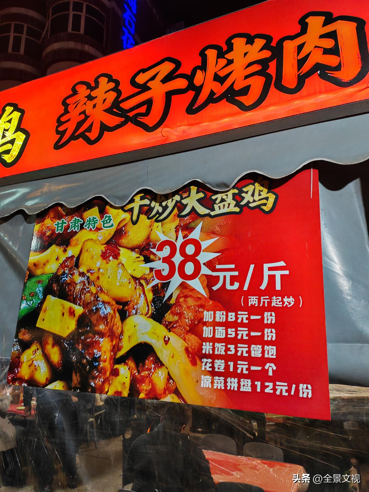 昨晚吃完晚饭在街道溜达,发现有个甘肃美食火爆的不是一般,但作为土生土长的甘肃人咋没有听说过这个美食? 昨晚在凤城六路西安中学东北侧一酒店傍边,发现人行道上一个大棚足有百十平米,里面灯火通明,人坐得满丫丫的。我好奇的到门前一看,原来是个专门的炒鸡店,看里面坐的食客都是吃的大方盘子干炒大盘鸡。 我在门外拍照,一个看上去四十左右的小伙子说,吃啥进来看,我说过吃晚饭了,下次一定来,甘肃老乡开的甘肃美食店,而且这么火爆,我一定得光顾一下。 我离开后,在回家的路上和老伴儿说,甘肃临夏的东乡手抓羊肉非常有名,中国干炒大盘鸡咋没有听说过?老伴儿说,天水有新疆大盘鸡,没有听说过干炒大盘鸡。 有没有甘肃的友友说说,临夏有没有这个干炒大盘鸡,它是不是甘肃美食?甘肃美食排行榜 甘肃风味美食