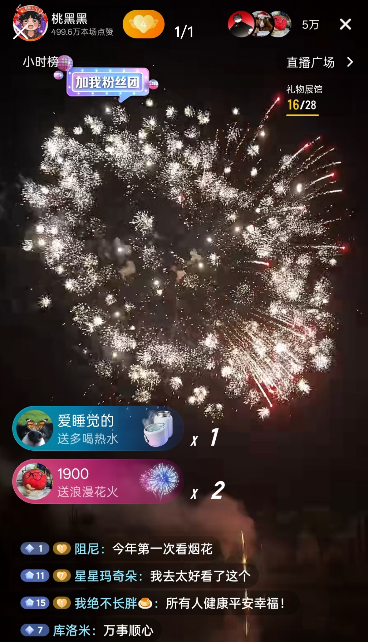 桃黑黑太真诚了,为粉丝放的定制烟花秀,去年今天正式开始成为主播,把这天定为蛋蛋军