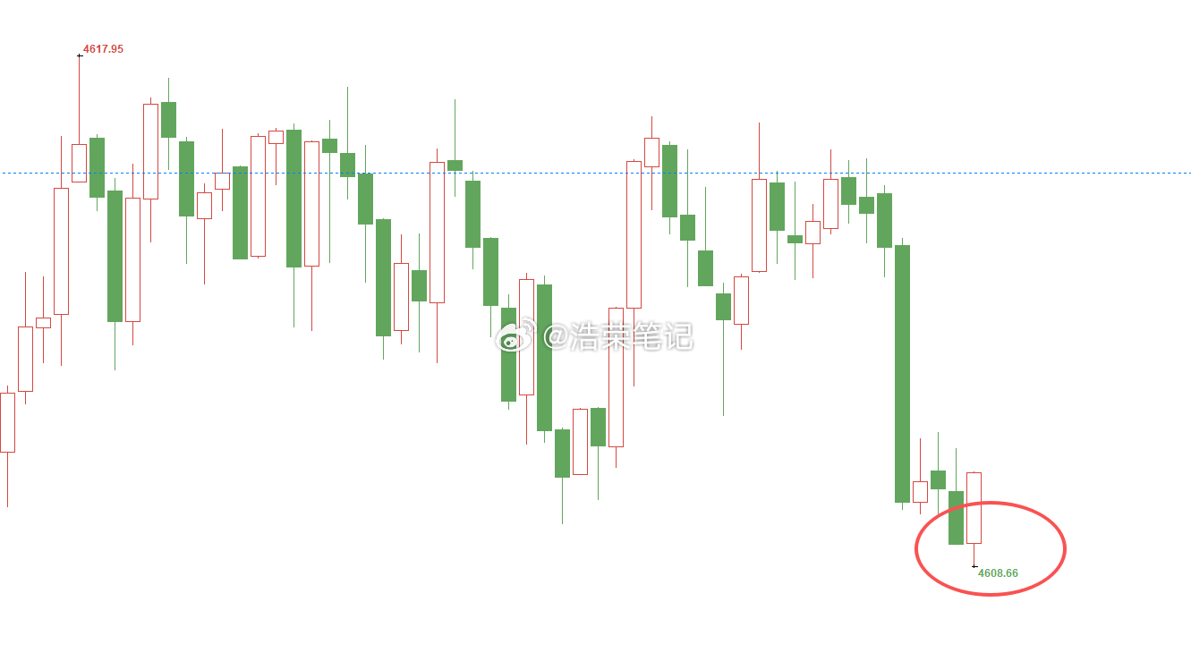黄金4615位置空,现行情下跌至4608位置,空单顺利浮盈70个点!获利的精髓在