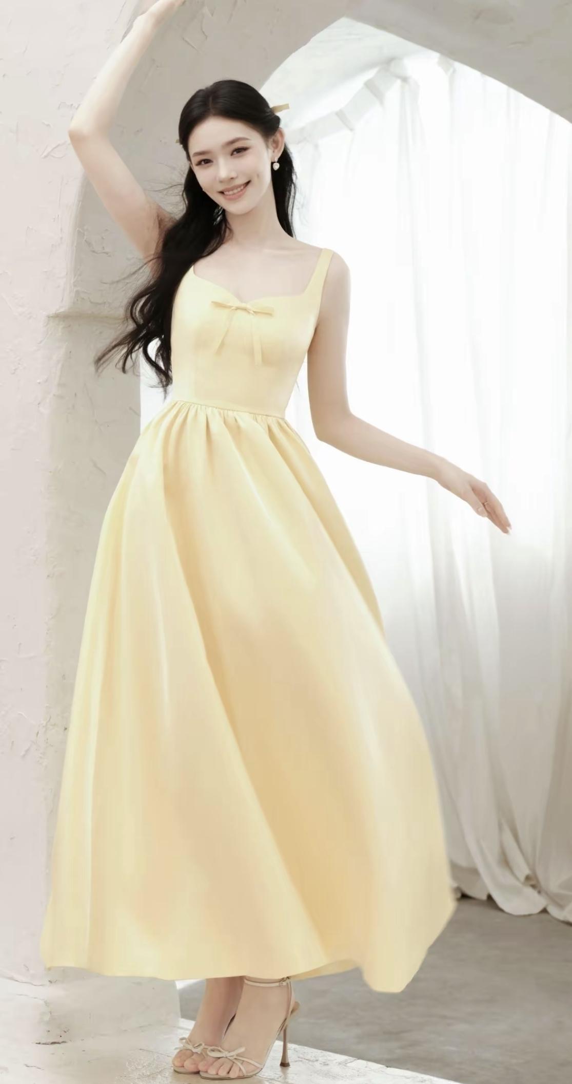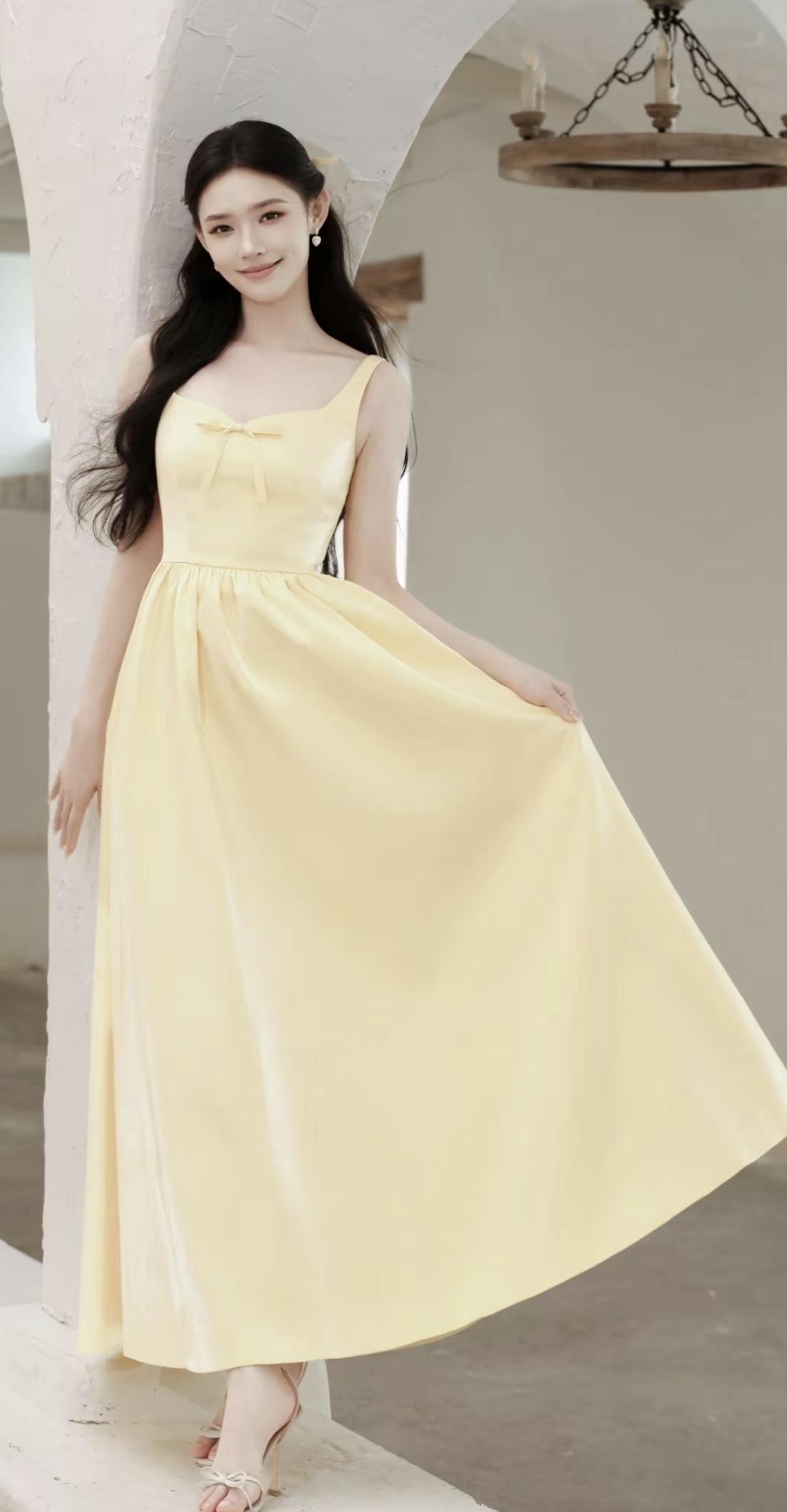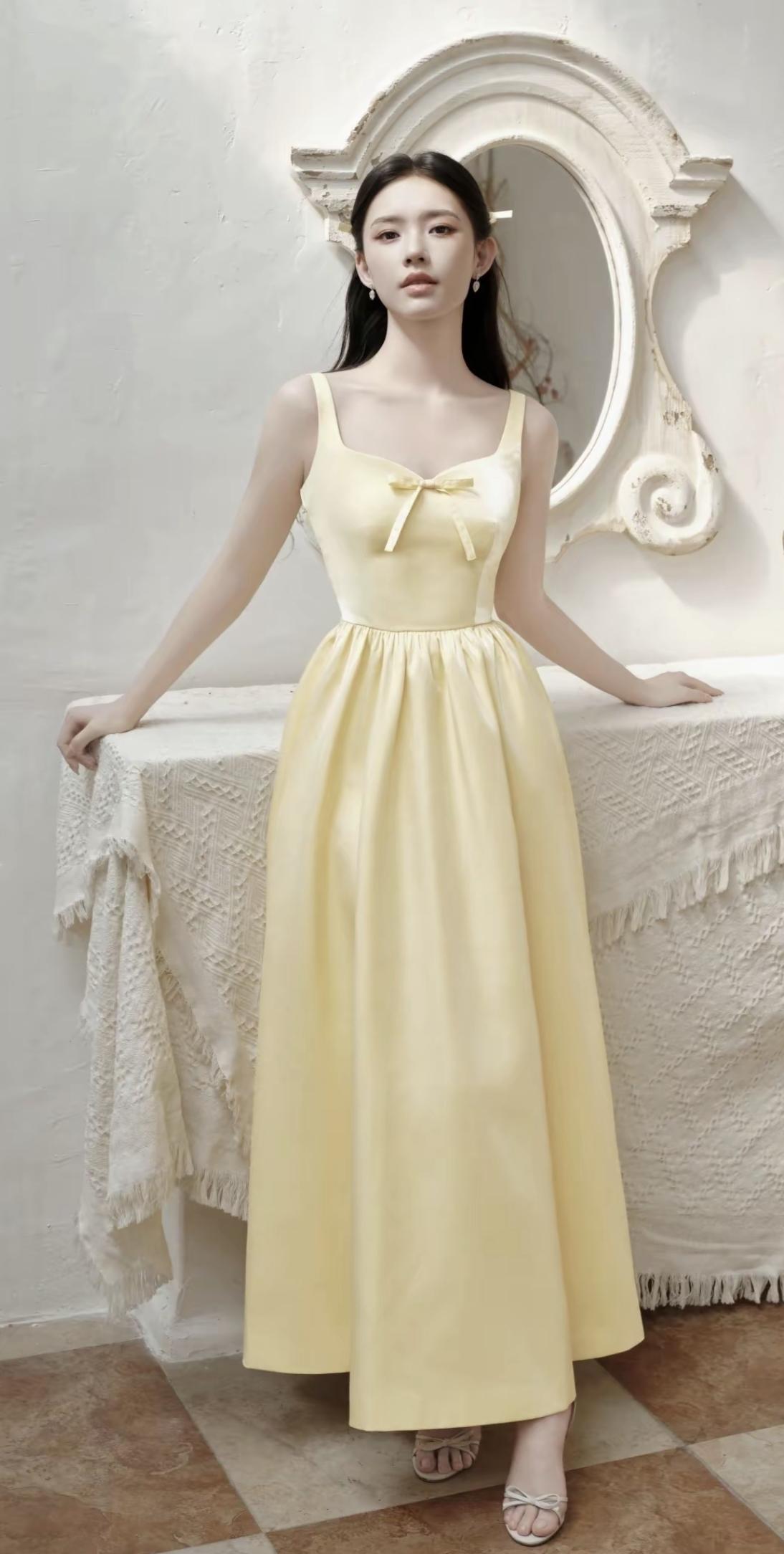 林允一袭鹅黄色吊带裙亮相,胸前蝴蝶结点缀俏皮灵动,蓬松裙摆随舞姿轻扬,在柔和光影