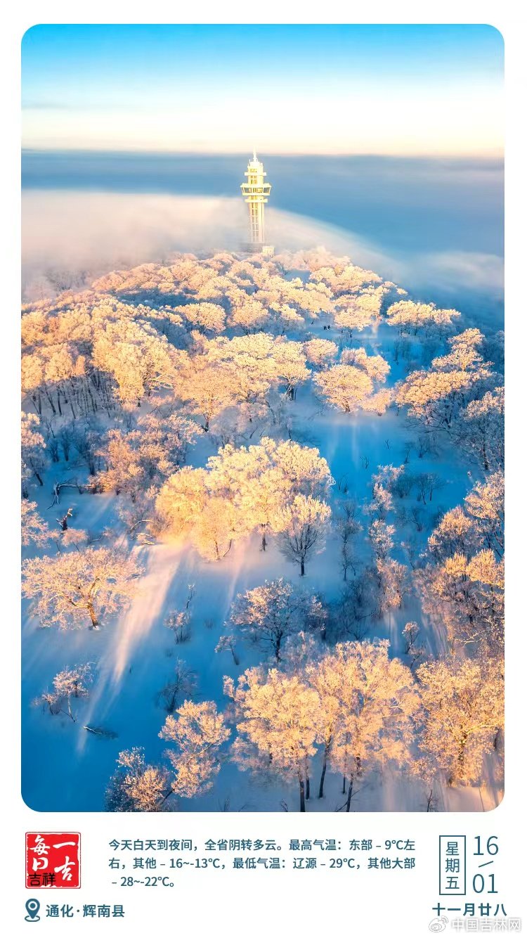 [天气]今天白天到夜间,全省晴有时多云。最高气温:东部地区-10~-8℃,其他地区-16~-13℃,最低气温:中西部地区-27~-24℃,其他大部分地区-22~-17℃。