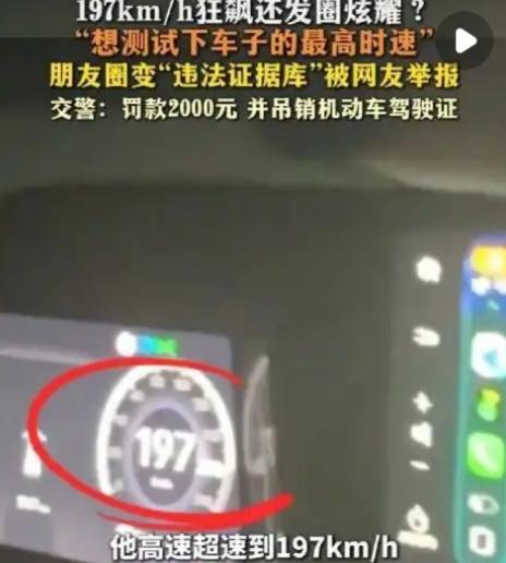 高速上狂飙至197公里/小时,还发朋友圈炫耀?湖南高速交警:罚款2000元,吊销