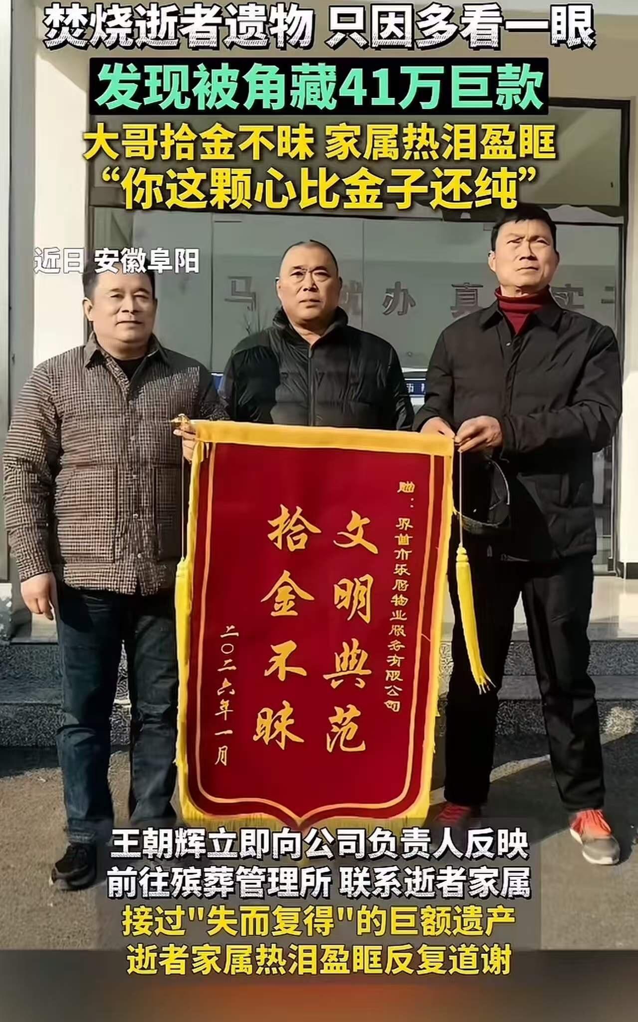 安徽,一名殡仪馆工作人员在处理逝者遗物时,竟于被子里发现了41万存款单。这位老人一辈子省吃俭用,从未向家人提及过这笔积蓄。故而,老人去世后,家人并未发现这个秘密,被子被带到了殡仪馆……险些就被火化了! 这是一个令人心碎且发人深省的故事,宛如一面镜子,折射出社会与人性的深层次问题。或许,我们都曾在生活中遭遇过类似的瞬间:那些藏于心底的秘密,那些被时间掩埋的真相。今日的故事,促使我们重新审视“财富”“家庭”“尊重”与“理解”,引发深刻反思。 故事的主人公是一位平凡老人,一生勤俭持家、省吃俭用,将所有心血都倾注于家庭和生活的细微之处。他没有豪言壮语,也不炫耀财富,以自己的方式诠释着“节俭就是美德”。然而,谁能料到,这份平凡背后,竟隐藏着一段鲜为人知的秘密。 老人离世后,家人匆忙料理后事,殡仪馆工作人员在整理遗物时,意外发现了那张41万的存款单。这笔钱,老人一生都未向任何人透露。或许,他是怕家人担忧,怕遭人觊觎,更怕打破那份简单平静的生活。这个秘密,如一块沉重的石头,压在每个人的心头。 可命运总是充满戏剧性。就在存款单被发现的刹那,它险些成为火化的“遗体财宝”。若不是工作人员细心,或是那份责任感,或许老人会在火化炉中化为灰烬,连积蓄都无法重见天日。 这个故事让我们不禁思索:家庭的信任究竟何在?我们是否真正了解身边的人?老人一生的秘密,是否也象征着一种无声的坚守与无奈?在这个物欲横流的时代,我们或许更应学会倾听,理解那些用一生守护的“秘密”。 同时,它也让我们反思社会的温度。殡仪馆工作人员没有因这笔钱而心生贪念,而是选择尊重与守护。这种职业责任感,值得每个人敬佩。或许,他们在用行动告诉我们:善良与正直,永远不会被时间和金钱磨灭。 此事背后,折射出人性最真实的一面:每个人都以自己的方式,守护着心中的纯粹与善良。 老人用一生的积蓄守住一个秘密,或许是对家人的爱,或许是对自己的交代。而我们,是否也在某个角落藏着属于自己的秘密?那些不愿被揭开的故事,是否也在默默提醒我们:尊重每个人的选择,理解每份沉默,才是真正的善良。 这个故事引发了无数人的共鸣。有人问:“如果是我,会怎么做?”有人感慨:“老人一辈子的节俭,终于在最后一刻得到了尊重。”更有人开始反思:我们是否太快评判一个人,太快揣测别人的生活?其实,每个人背后都有一段不为人知的故事。 或许,我们都应学会多些理解,少些猜测;多份尊重,少些偏见。因为,生活中最珍贵的并非金钱与物质,而是那份沉甸甸的爱与责任。 这件事告诉我们:无论身处何方,无论身份如何,善良与尊重永不过时。老人用一生的积蓄,教会我们一个简单却深刻的道理——理解,是家庭最好的桥梁;尊重,是人性最美的体现。让我们从今日起,学会用心倾听,用爱守护身边的每个人。 这,便是生活最真实的模样。你我都身处其中,等待被理解,也努力成为理解他人的人。因为,唯有如此,世界才会更加温暖、美好。 铜陵殡仪馆