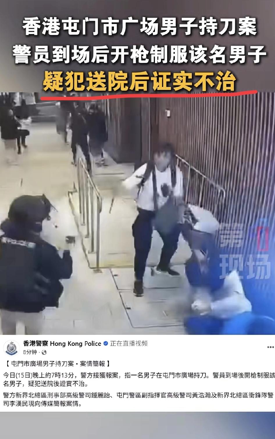 左轮换国产,阿sir威武!判断准确,出手及时,成功解救了人质,坏人送医不治。 15号晚上,一越南籍有前科男子,据称身上带着违禁药品被查,跑到地铁抓住一女子当人质。 阿sir们将他围堵,在千钧一发时扣动扳机。 视频可以看出当时情况非常危急,男子手里有家伙,人质随时有生命危险。 阿sir很果断很专业,为他们点赞!