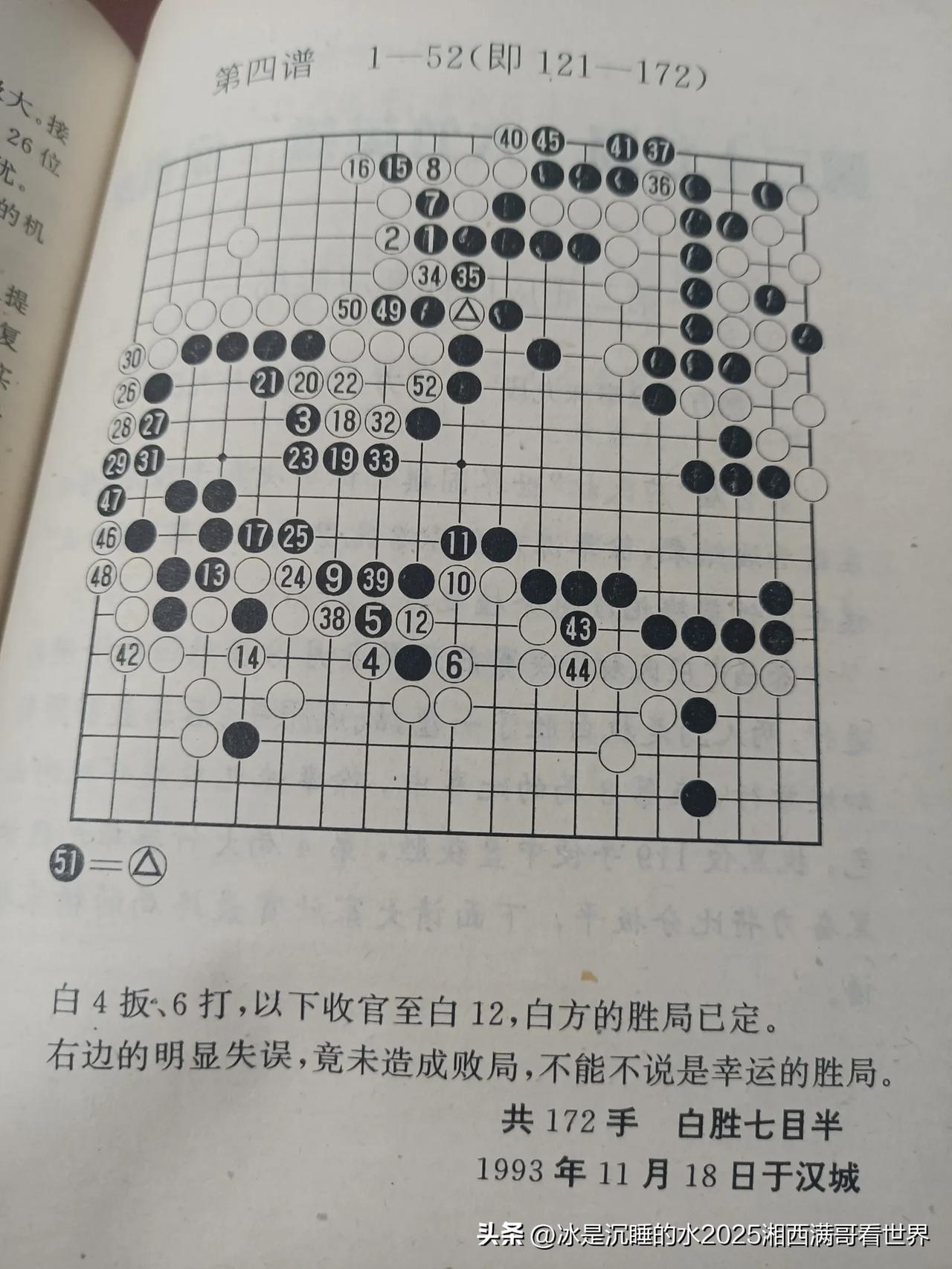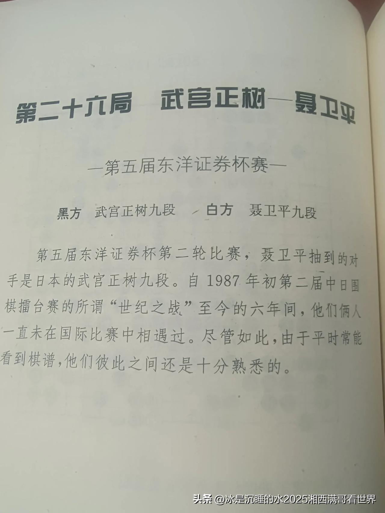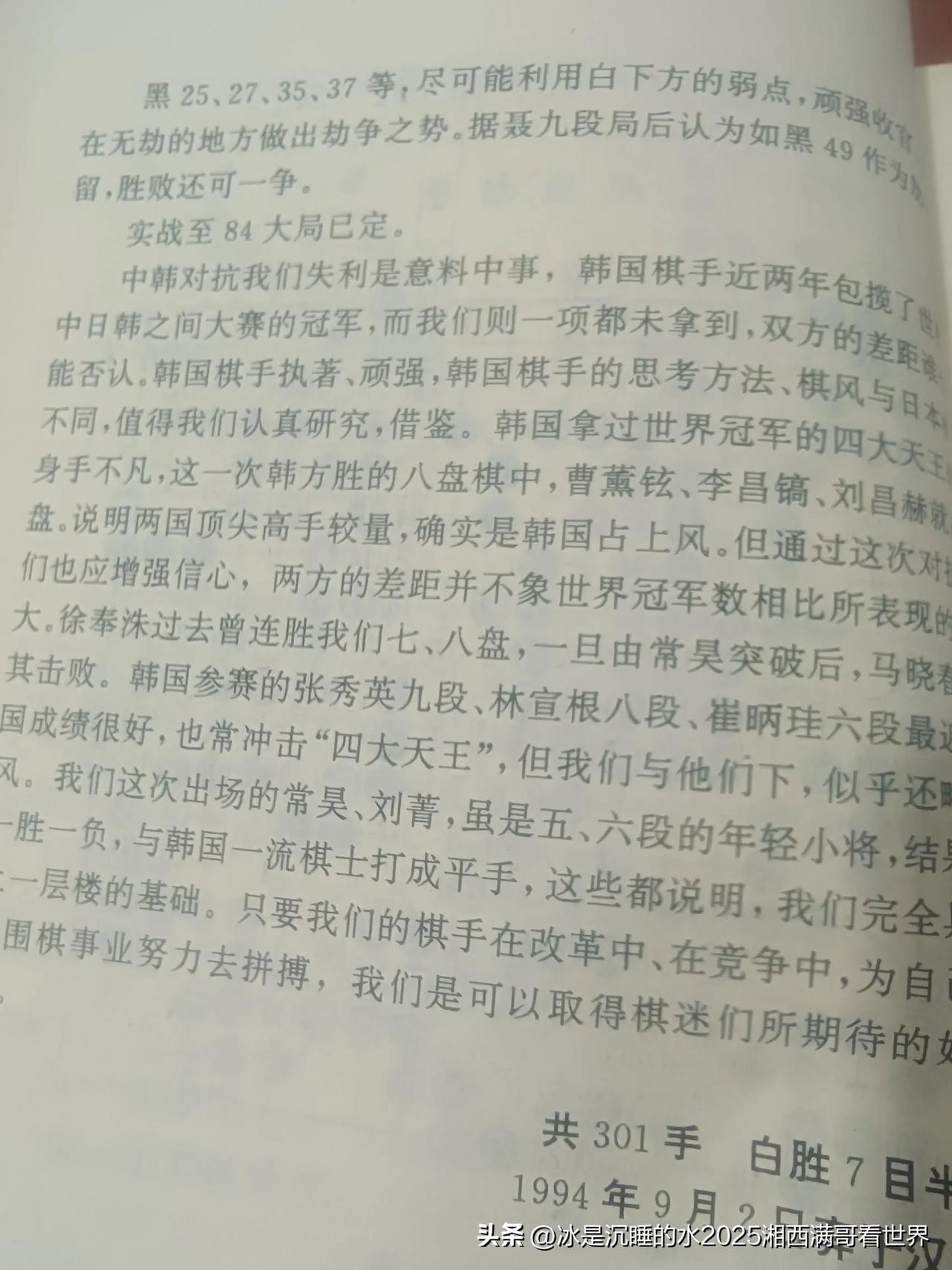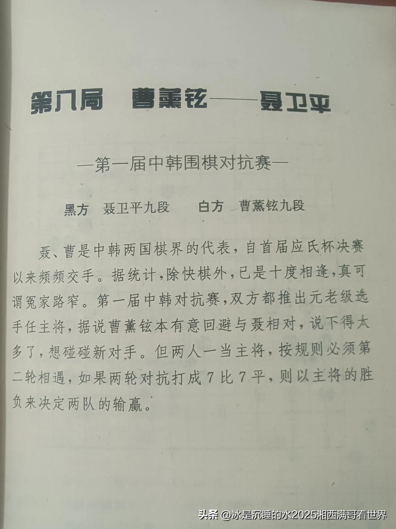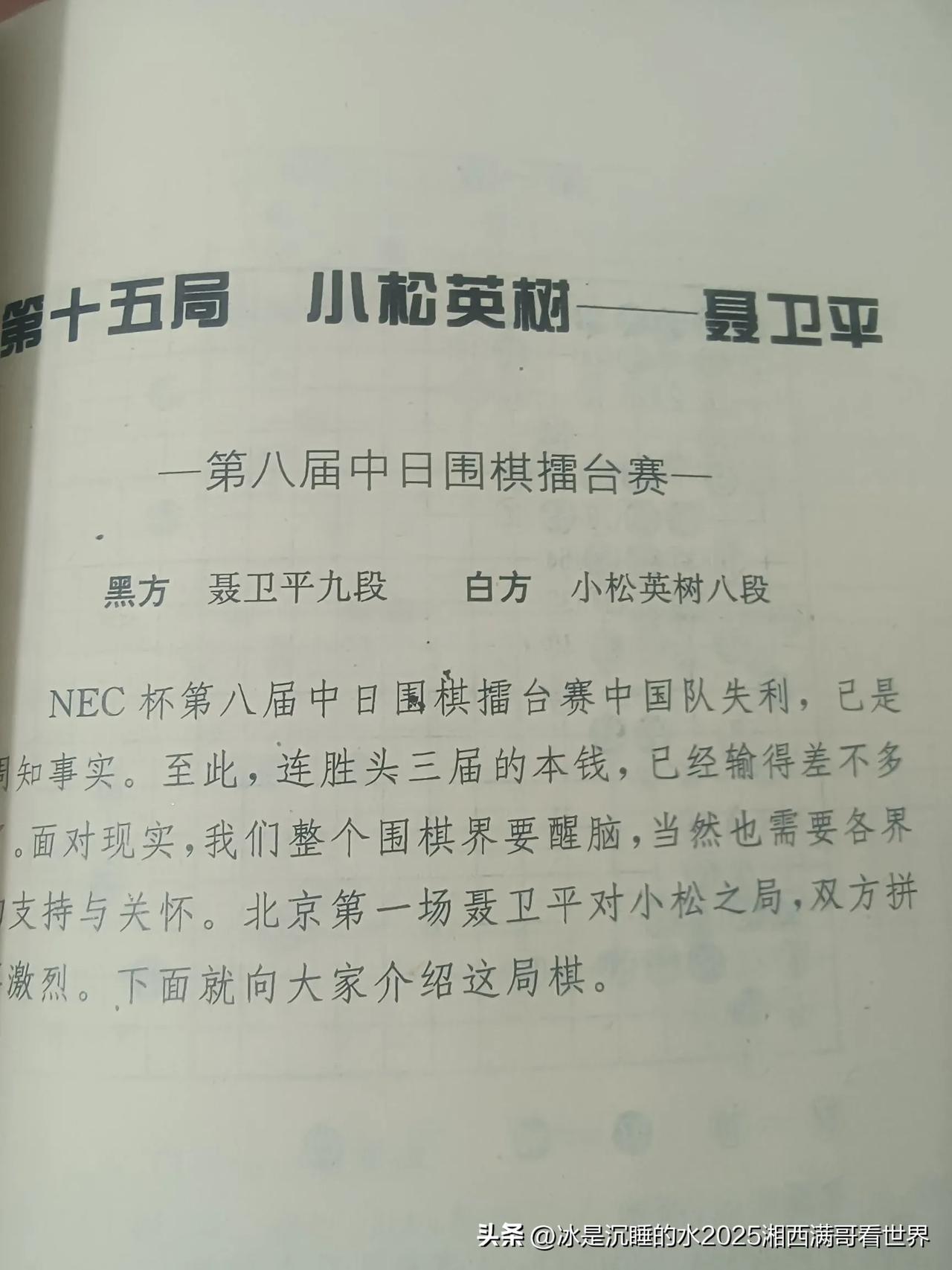 分享一组个人青年时代自学围棋到书店购买的《中日韩超级棋星名局鉴赏》封面以及部分聂卫平的棋局。 上个世纪八十年代,是日本职业围棋黄金期,七大新闻棋战与六大超一流棋手巨星显赫一时,催生出中国与日本的围棋擂台赛。聂卫平横刀立马,多次孤身一人击退日本超一流棋手,坚守擂台并且取得胜利,成为棋坛传奇;九十年代,韩国职业围棋异军突起,“围棋皇帝”曹薰铉与“石佛”李昌镐、“玉面杀手”刘昌赫、“野草”徐奉洙、“飞禽岛少年”李世石如同韩流席卷棋坛,压制中国、日本同时期职业围棋高手,聂卫平、马晓春、常昊、古力等前赴后继奋力反击,中日韩围棋风云变幻、跌宕起伏,谱写新篇章。