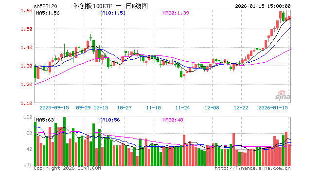 1月15日,科创板100ETF(588120)涨0.45%,成交额7890.73万元。当日份额减少600.00万份,最新份额为7.18亿份,近20个交易日份额减少7200.00万份。最新资产净值计算值为11.23亿元。