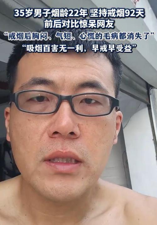 烟龄22年,戒烟92天,35岁男子胸闷气短心慌全消失!用数据告诉你戒烟有多值,身体的修复速度远超你的想象! ✅ 生理修复节奏:戒烟20分钟心率回落,12小时血液一氧化碳恢复正常,数周肺部纤毛重启排毒,慢慢清理肺部垃圾 ✅ 吸烟致病核心:烟草含70种致癌物,破坏气道纤毛+一氧化碳降低血氧,身体长期缺氧,心慌气短全找上门 ✅ 量化改善成果:肺活量提升20%,收缩压可降5-10mmHg,身体机能肉眼可见变好 吸烟百害无一利,没有任何侥幸可言,早戒烟,早让身体回归健康状态!