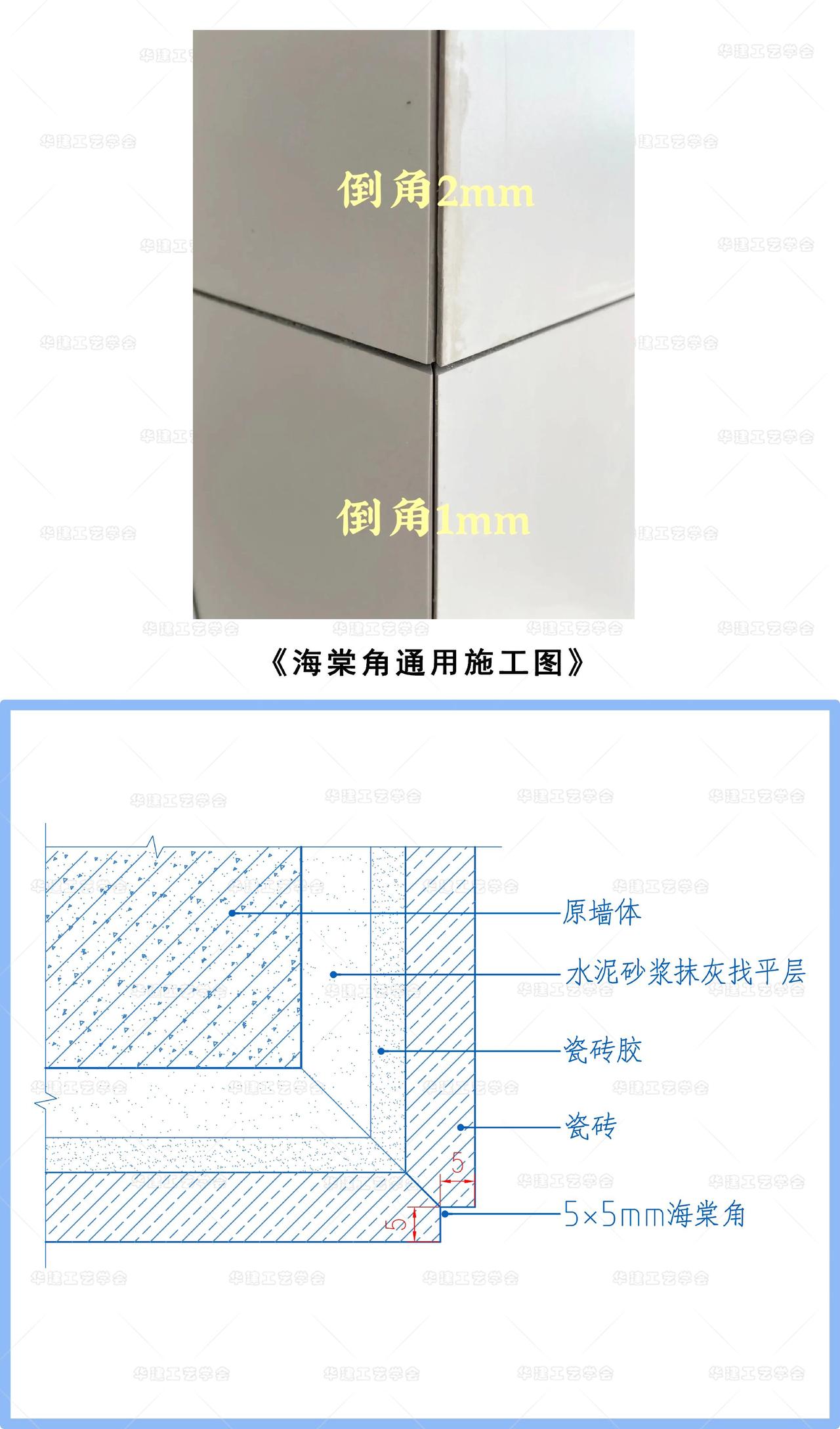 海棠角: 是指在两块石材、瓷砖进行"45"磨斜边的基础上,每块“对接边”需倒“直角”,以致两块石材阳角对接时,一般形成“5*5mm工艺凹槽”,俗称“海棠角”。 海棠角中间拼起来的缝,方便后期做美缝。 装修 室内装修设计 海棠角 设计师