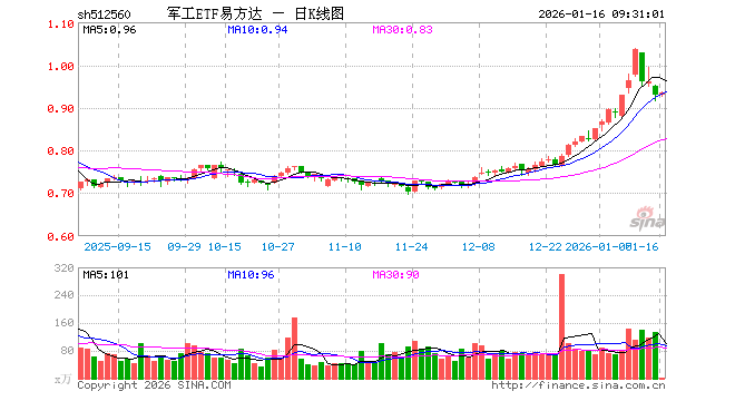 军工ETF易方达(512560)业绩比较基准为中证军工指数,管理人为易方达基金管理有限公司,基金经理为余海燕,成立(2017-07-14)以来回报为86.88%,近一个月回报为22.10%。