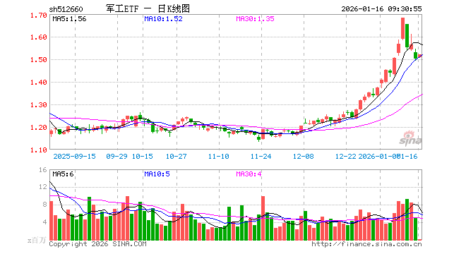 军工ETF(512660)业绩比较基准为中证军工指数收益率,管理人为国泰基金管理有限公司,基金经理为艾小军,成立(2016-07-26)以来回报为51.50%,近一个月回报为21.72%。