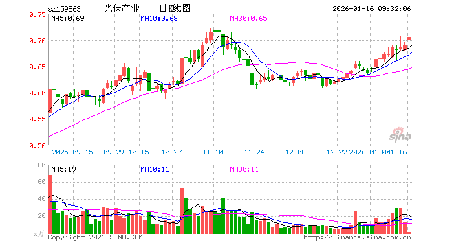 1月16日,光伏ETF鹏华(159863)开盘涨1.60%,报0.700元。光伏ETF鹏华(159863)重仓股方面,阳光电源开盘涨1.44%,隆基绿能涨0.59%,特变电工涨7.76%,TCL科技涨0.61%,通威股份涨0.65%,正泰电器涨4.06%,晶盛机电涨0.70%,TCL中环涨0.57%,德业股份涨0.45%,捷佳伟创涨0.04%。