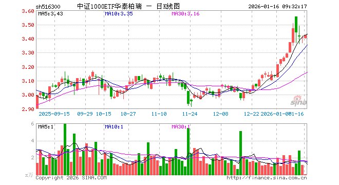 1月16日,中证1000ETF华泰柏瑞(516300)开盘跌0.18%,报3.400元。中证1000ETF华泰柏瑞(516300)重仓股方面,安集科技开盘涨0.80%,和而泰涨1.04%,华虹公司涨2.21%,欧菲光涨0.27%,源杰科技跌0.13%,东芯股份涨1.59%,银轮股份跌0.77%,方正科技涨1.11%,乐鑫科技跌0.61%,香农芯创跌0.32%。