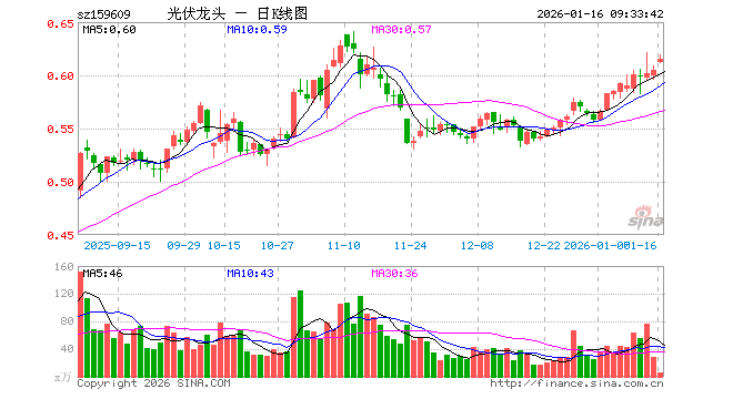 光伏ETF浦银(159609)开盘涨1.16%,重仓股阳光电源涨1.44%,隆基绿能涨0.59%