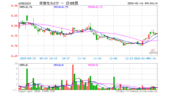 1月16日,疫苗龙头ETF(561920)开盘涨0.53%,报0.759元。疫苗龙头ETF(561920)重仓股方面,智飞生物开盘涨0.21%,万泰生物涨0.09%,沃森生物涨0.24%,荣昌生物跌1.05%,辽宁成大涨0.41%,康泰生物涨0.00%,长春高新涨1.40%,甘李药业涨0.36%,山东药玻涨0.61%,复星医药涨0.14%。