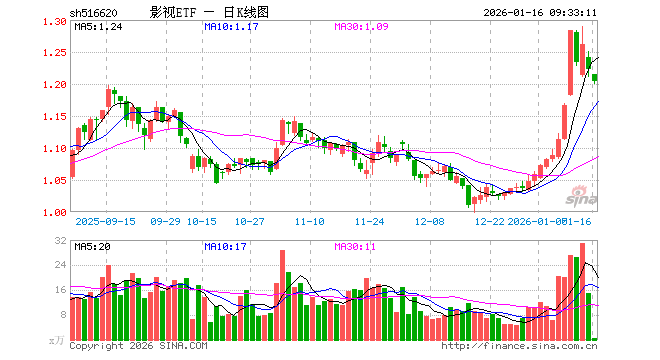 1月16日,影视ETF(516620)开盘跌0.65%,报1.215元。影视ETF(516620)重仓股方面,芒果超媒开盘跌0.58%,完美世界涨0.82%,光线传媒涨0.11%,东方明珠跌4.09%,捷成股份跌1.21%,万达电影涨0.00%,华策影视涨0.00%,中国电影跌0.24%,视觉中国跌10.00%,吉视传媒跌2.11%。