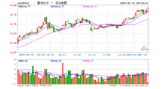 新材料50ETF(159761)业绩比较基准为中证新材料主题指数收益率,管理人为国泰基金管理有限公司,基金经理为王玉,成立(2021-11-24)以来回报为-22.72%,近一个月回报为11.66%。