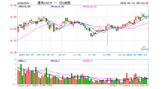 1月16日,漂亮50ETF(561500)开盘涨0.94%,报0.858元。漂亮50ETF(561500)重仓股方面,东方财富开盘涨0.96%,恒瑞医药涨0.28%,阳光电源涨1.44%,迈瑞医疗涨0.21%,豪威集团涨0.82%,万华化学涨0.87%,福耀玻璃跌0.31%,金山办公跌0.92%,同花顺涨1.68%,天孚通信涨1.35%。