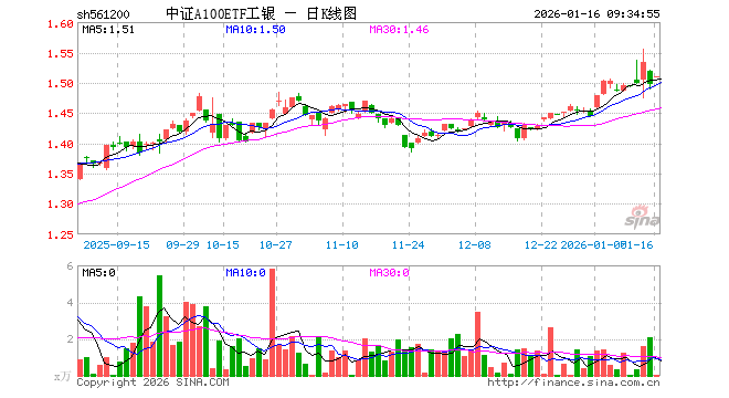 1月16日,中证A100ETF工银(561200)开盘涨0.80%,报1.509元。中证A100ETF工银(561200)重仓股方面,宁德时代开盘涨1.20%,贵州茅台涨0.44%,中国平安涨0.28%,招商银行涨1.00%,紫金矿业涨0.18%,美的集团涨0.04%,中际旭创涨1.75%,寒武纪涨0.35%,长江电力涨0.22%,兴业银行涨0.44%。