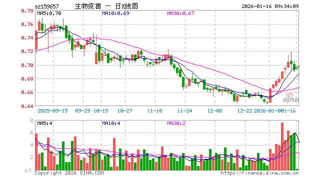 1月16日,疫苗ETF鹏华(159657)开盘涨0.43%,报0.695元。疫苗ETF鹏华(159657)重仓股方面,长春高新开盘涨1.40%,复星医药涨0.14%,智飞生物涨0.21%,万泰生物涨0.09%,沃森生物涨0.24%,华兰生物涨0.06%,药明康德涨0.02%,昭衍新药跌0.21%,丽珠集团涨0.42%,恒瑞医药涨0.28%。