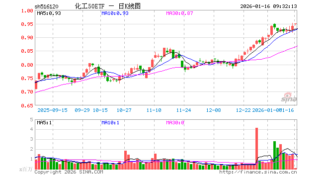 1月16日,化工50ETF(516120)开盘涨0.85%,报0.948元。化工50ETF(516120)重仓股方面,万华化学开盘涨0.87%,盐湖股份跌0.06%,巨化股份涨1.05%,天赐材料涨0.02%,藏格矿业涨0.11%,金发科技涨0.81%,华鲁恒升涨0.09%,宝丰能源涨1.00%,恒力石化跌0.17%,云天化涨0.28%。