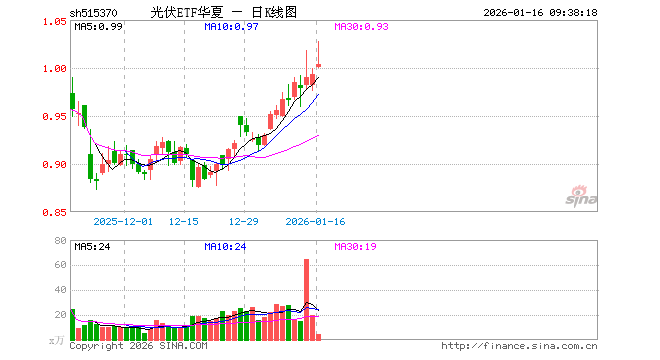 光伏ETF华夏(515370)开盘涨0.81%,重仓股阳光电源涨1.44%,隆基绿能涨0.59%
