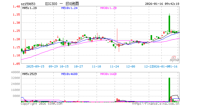 1月16日,ESG300ETF(159653)开盘涨0.81%,报1.248元。ESG300ETF(159653)重仓股方面,宁德时代开盘涨1.20%,贵州茅台涨0.44%,中国平安涨0.28%,招商银行涨1.00%,紫金矿业涨0.18%,美的集团涨0.04%,中际旭创涨1.75%,东方财富涨0.96%,长江电力涨0.22%,兴业银行涨0.44%。