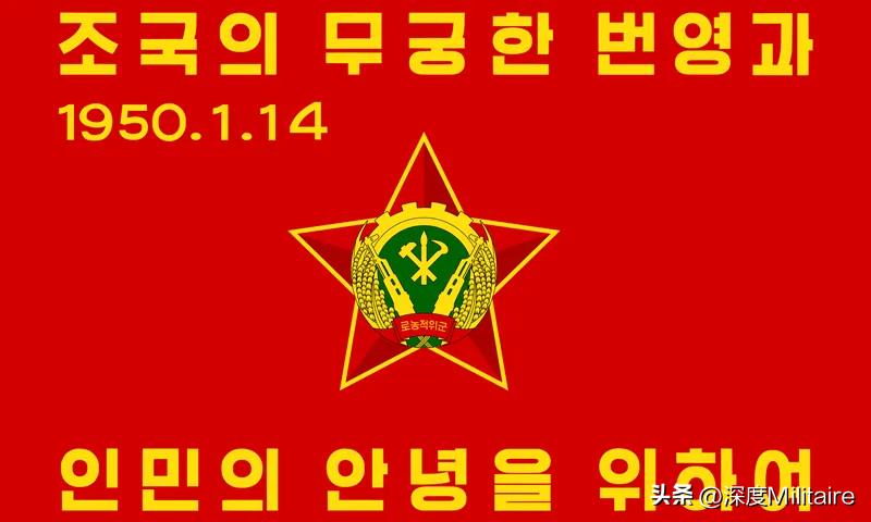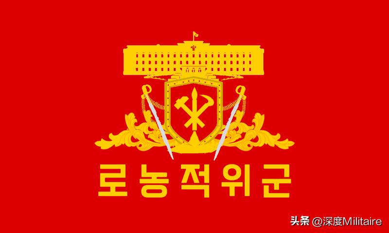 朝鲜工农赤卫军的军徽、军旗。工农赤卫军相当于民兵军事性质组织。等于朝鲜式民兵。 工农赤卫军军旗正面。上下字样连起来是口号,“为了人民的安宁和祖国的无穷繁荣” 红色青年近卫队成立于1970年9月12日,是朝鲜14岁以上、16岁以下青少年学生的准军事组织;2010年10月10日阅兵时,与工农赤卫队一起由队改军。这两支队伍最直接、简便的辨别方式是制服——工农赤卫军全军绿;红色青年赤卫军则是蓝帽子、灰上衣、蓝裤子