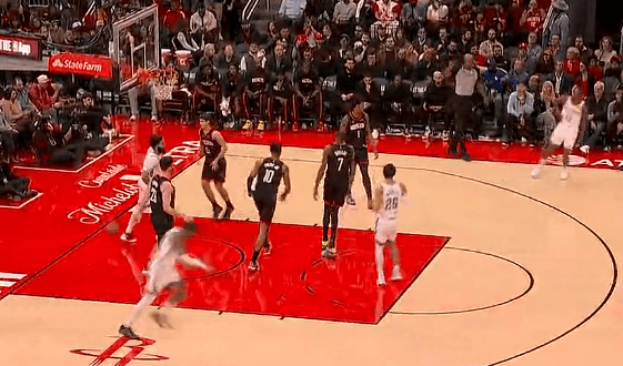虎扑01月16日讯NBA常规赛,雷霆客场对阵火箭的比赛正在进行中。