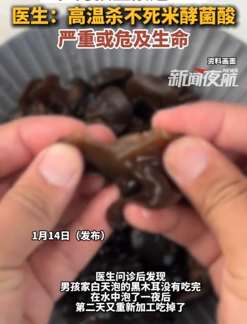 “悲剧还是发生了!”近日,河南郑州,一家人做饭木耳泡多了,一顿吃不完,便将剩下的木耳继续泡在水中,第二天又做了木耳,没想到5岁男孩吃后开始上吐下泻、精神萎靡,被紧急送医后转入ICU抢救!网友:隔夜木耳不能吃!   厨房里飘着爆炒木耳的香气,这是河南郑州一户普通家庭餐桌上的常客。   爽脆的口感、丰富的营养,让黑木耳成为很多家庭的下饭食材,可谁也不会想到,就是这样一盘家常菜,会让一个5岁的孩子躺在ICU的病床上,与死神赛跑。   这场意外的源头,只是一个再常见不过的生活习惯,事发前一天,这家人准备午饭时,随手泡了一把黑木耳,大概是没掌握好量,泡发后的木耳足足多出了一顿的分量。   看着泡得饱满的木耳,想着倒掉太可惜,勤俭节约的念头占了上风,家人便没把剩余的木耳捞出来,任由它在水里继续泡着,打算留到第二天再吃。   就这样,木耳在室温下浸泡了整整一夜,转天中午,家人将泡发了近24小时的木耳简单清洗后下锅爆炒,很快,一盘油光发亮的木耳就端上了桌。   5岁的小男孩正是贪吃的年纪,夹起木耳就往嘴里送,吃得津津有味。   没人察觉到危险的降临。饭后没多久,原本活蹦乱跳的孩子突然捂着肚子喊难受,紧接着一阵恶心反胃,趴在马桶上剧烈呕吐,没过多久又开始腹泻。   短短一个小时里,孩子上吐下泻了好几次,脸色迅速变得苍白,眼神也失去了往日的灵动,整个人蔫蔫地靠在沙发上,连说话的力气都没有。   家人这才慌了神,手忙脚乱地抱着孩子往医院赶,急诊室里,医生看着孩子精神萎靡的样子,立刻安排了全面检查。   检查结果出来的那一刻,所有人都愣住了,孩子确诊为米酵菌酸中毒,并且因为毒素已经开始侵袭身体,必须立刻转入ICU进行抢救。   接诊医生的话,让这家人彻底陷入了悔恨。   医生解释,米酵菌酸是一种毒性极强的物质,它最容易在长时间浸泡的干货食材里滋生,尤其是在常温环境下,木耳泡发超过8小时,就可能成为这种毒素的“培养皿”。   更可怕的是,这种毒素有着极强的耐热性,不管是爆炒还是蒸煮,再高的温度都无法破坏它的毒性,一旦吃进肚子里,就会对人体的肝脏、肾脏等器官造成严重损伤。   很多人都有这样的误区,觉得木耳泡发的时间越长,口感越好,甚至有人会提前一两天就泡上木耳备用。   还有人抱着“以前这么吃都没事”的想法,对泡发过夜的食材不以为意。   但事实上,米酵菌酸的滋生,和环境温度、浸泡时间息息相关,哪怕是同一批木耳,这次没事不代表下次安全。   除了木耳、银耳,粉条、玉米面制品等,长时间存放或者不当处理,也可能滋生这种致命毒素。   在ICU外焦急等待的这家人,此刻肠子都悔青了,他们怎么也想不到,自己只是想省下一点木耳,却差点让孩子付出生命的代价。   节约是刻在很多人骨子里的美德,可当节约和食品安全发生冲突时,孰轻孰重,其实一目了然。   一盘木耳的价值,不过几块钱,可一个孩子的生命,一个家庭的幸福,是用多少钱都换不回来的。   我们总说“病从口入”,却常常忽略了,那些藏在日常饮食里的安全隐患,往往就来自于“舍不得”这三个字。   舍不得倒掉泡发过多的食材,舍不得扔掉稍微有点异味的食物,殊不知,这一点点的舍不得,可能就是打开危险的潘多拉魔盒。   泡发木耳其实有章可循,专家早就给出过明确建议:木耳最好随泡随吃,用冷水泡发1到2小时就足够,最长不要超过4小时。   如果确实泡多了,一定要及时捞出沥干,放进冰箱冷藏,并且尽快吃完;一旦发现木耳摸起来发黏、闻起来有异味,哪怕只是一点点,也要毫不犹豫地扔进垃圾桶。   这场发生在郑州的悲剧,再次给所有人敲响了警钟,当我们在厨房里忙碌,为家人准备一日三餐时,安全永远是第一位的。   那些被我们随手泡在水里的食材,那些因为舍不得而留下的食物,都可能暗藏风险,勤俭节约的美德值得传承,但传承的前提,是守护好家人的健康。 信息来源:都市报道2026-01-14发布:5岁男孩吃黑木耳中毒进ICU