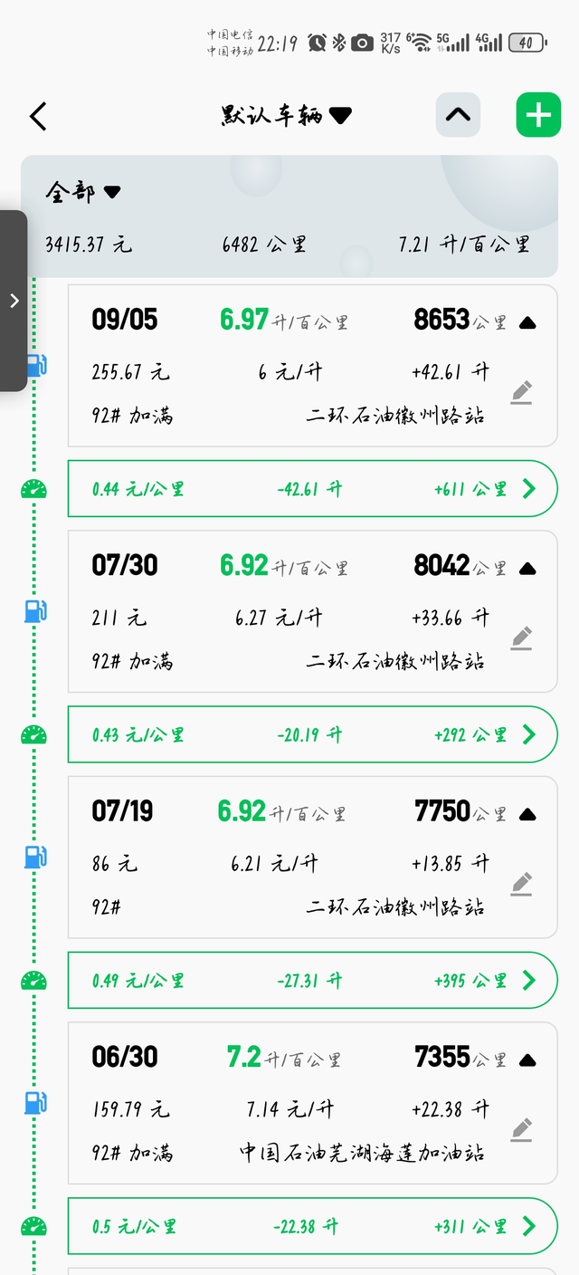 实测能耗6.97L/百公里 表显因为部分出发点在地下车库,APP未计算行程,ap