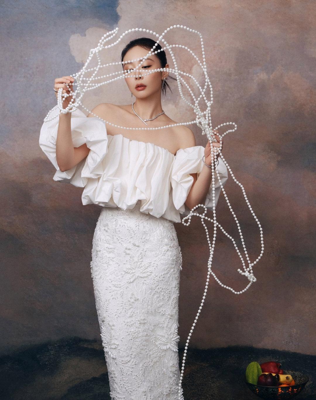 高叶, 她的这一身白色穿搭,穿得像仙女下凡, 又像从画中走出来的美人,美翻了!真